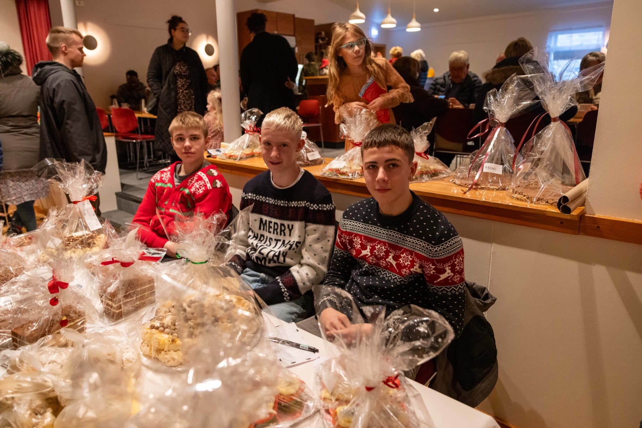 Þeir Ásgeir Veigar Sólbergsson, Haukur Smári Ragnarsson og Reynir Már Jónsson buðu upp á gómsætt sætmeti til styrktar bekkjarferðalags þeirra á næsta ári. Ljósmyndir: tfk