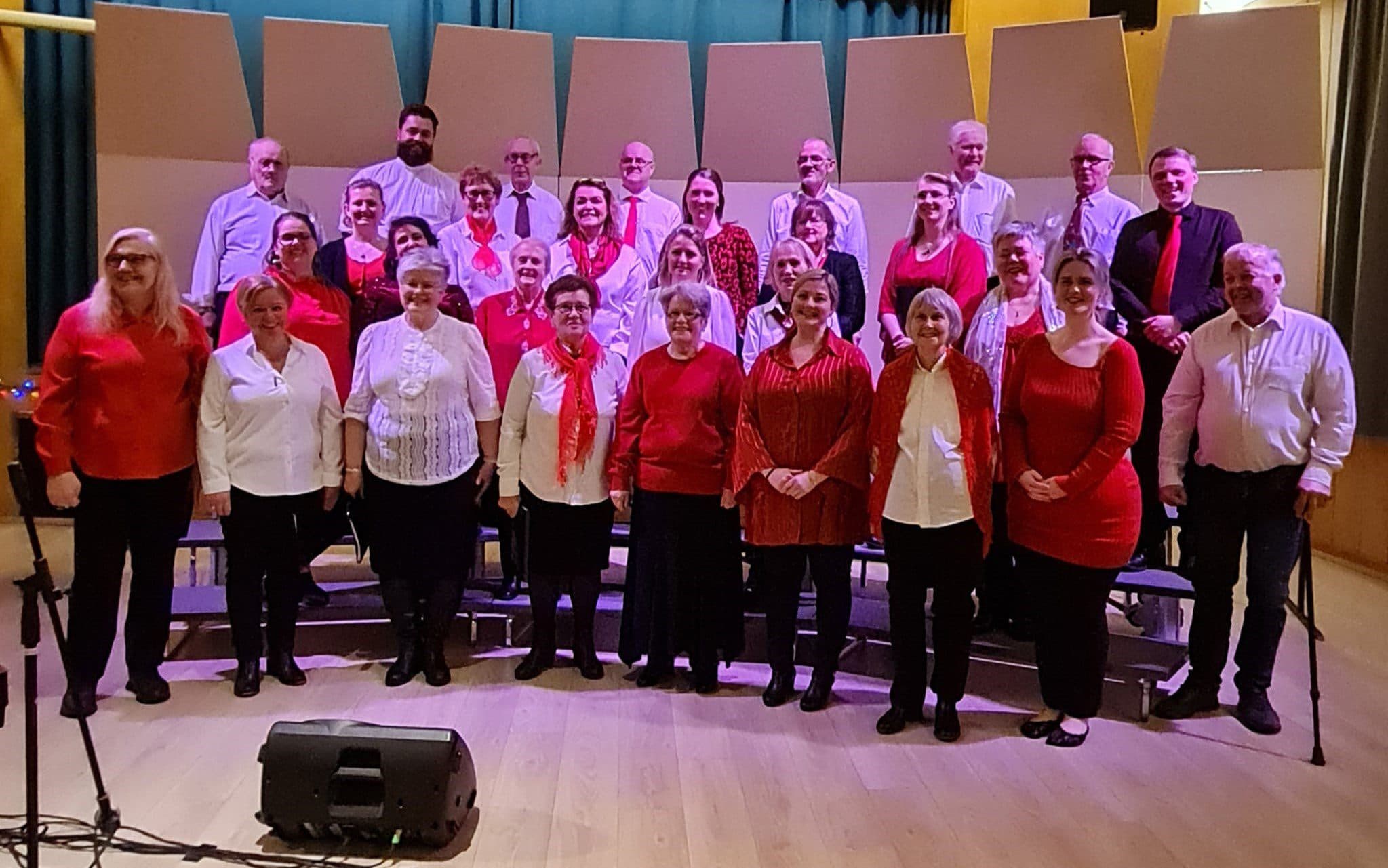 Kirkjukór Dalaprestakalls og Sönghópurinn Hljómbrot, ásamt kórstjóranum Sigurbjörgu I. Kristínardóttur og meðleikurum. Meðleikarar á tónleikunum voru Sigrún Hanna Sigurðardóttir sem spilaði á þverflautu og Kristján Ingi Arnarsson sem spilaði á hljómborð. Ljósm. Ása María Hauksdóttir.
