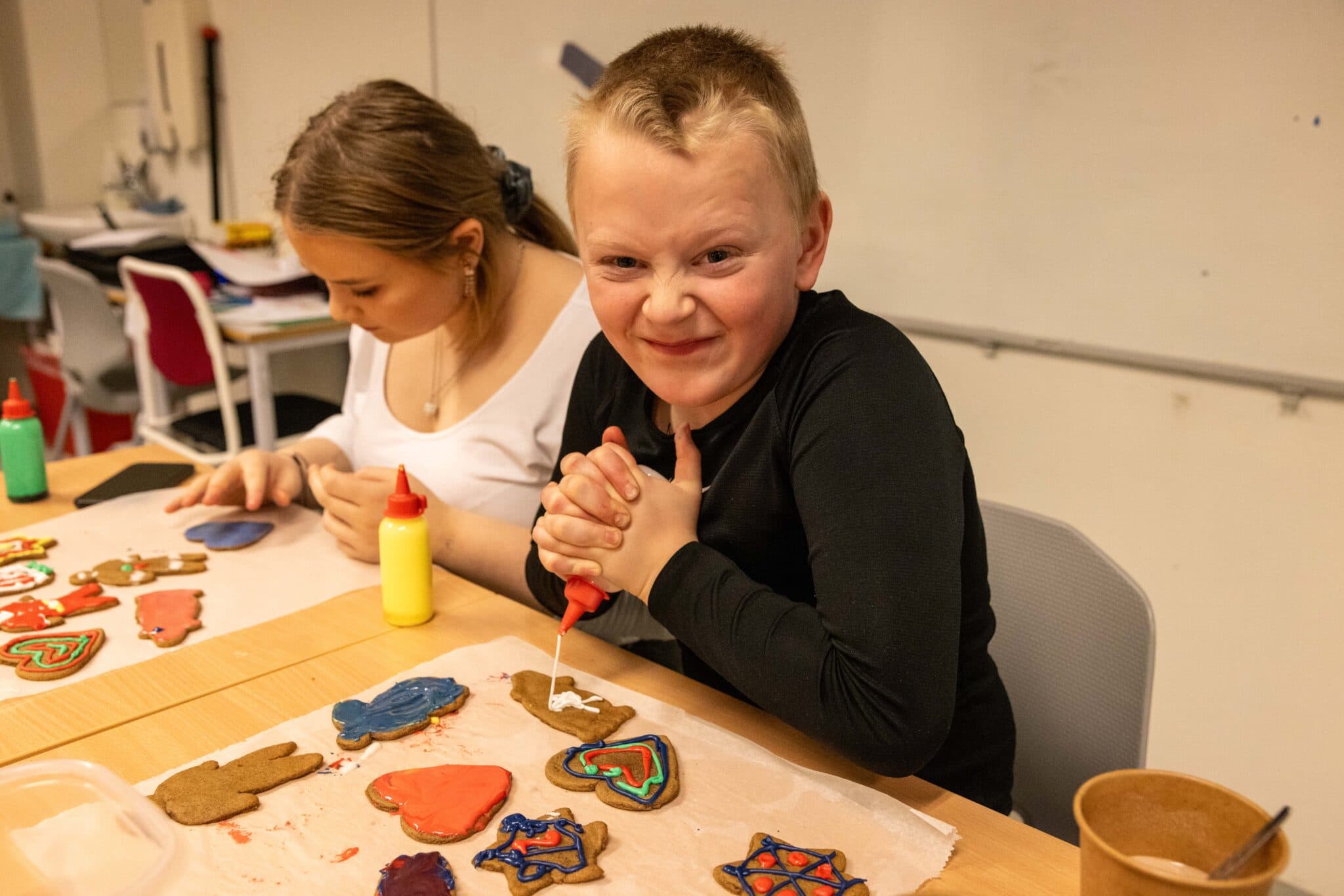 Föstudaginn 1. desember lagði piparkökuilm um ganga grunnskólans í Grundarfirði. Ástæðan var piparkökubakstur Foreldrafélags Grunnskóla Grundarfjarðar sem er liður í fjáröflun félagsins. Ófáar plötur af gómsætum piparkökum voru bornar fram sem krakkarnir skreyttu í öllum regnbogans litum. Einhverjar fóru ofan í box til geymslu en ófáar rötuðu beint upp í munna föndrara. Það má.