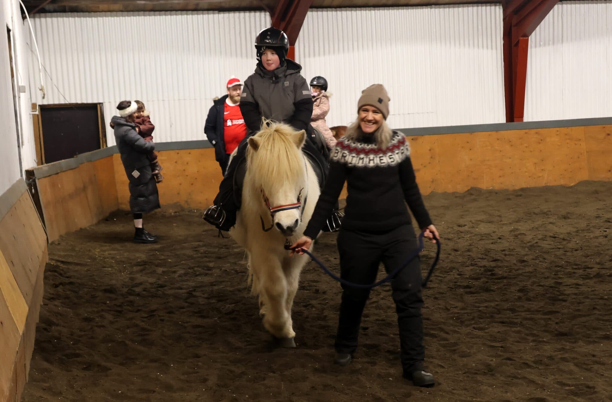 Það var sannkölluð jólastemning á Brimisvöllum hjá þeim hjónum Veronicu Osterhammer og Gunnari Tryggvasyni þegar þau buðu íbúum í Snæfellsbæ upp á svokallað jólahesthús í gær. Þá voru glæsilegar veitingar í boði þeirra hjóna fyrir gesti. Teymt var undir börnum og hestunum klappað. Börnin sem litu við þennan dag voru fjölmörg en hrossin í húsi voru 57, að sögn Gunnars. Veronica segir að þetta hafi verið mun betri þátttaka en þau áttu von á og fagnaði hún því.
