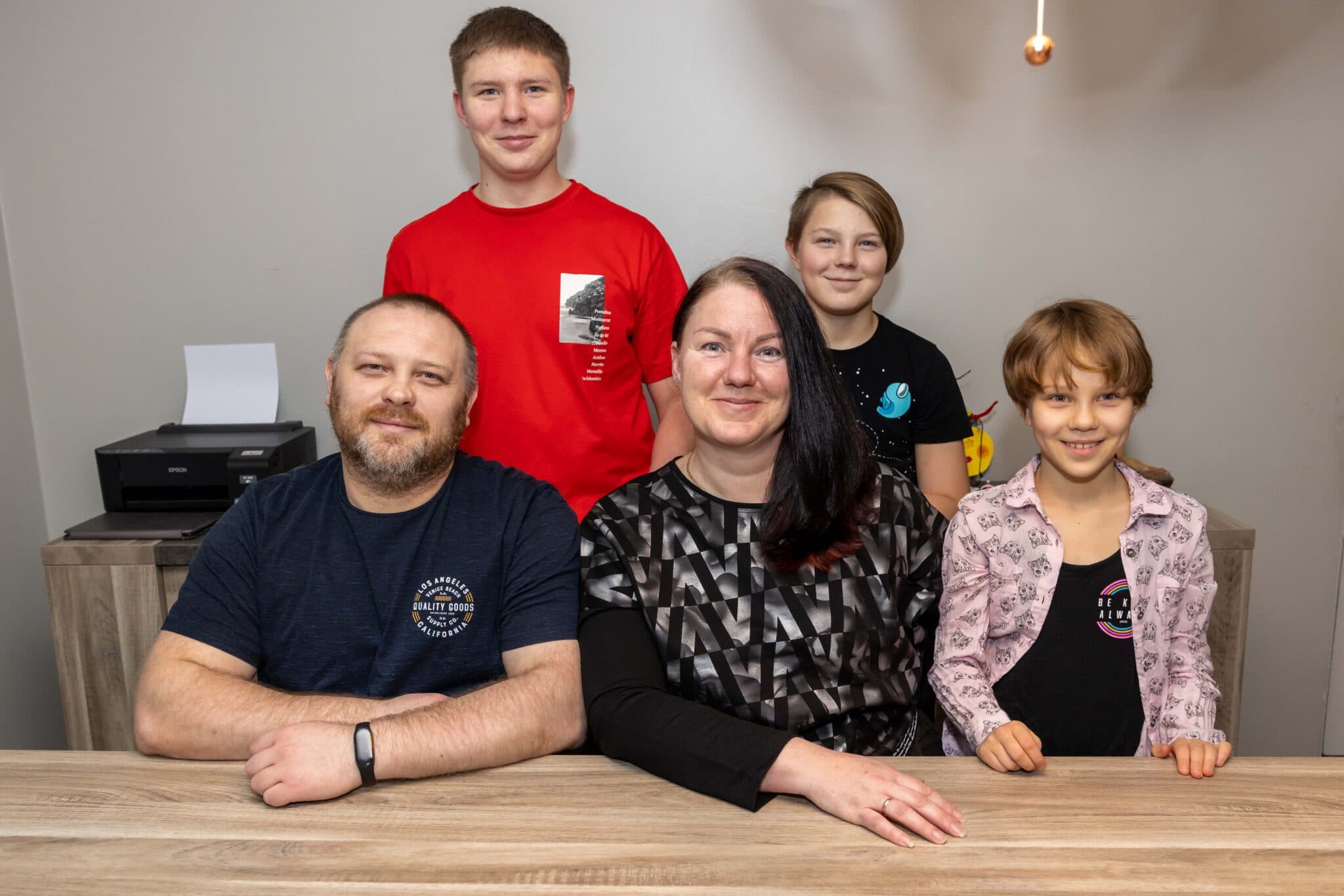 21.12.2023 11:35F.v. Sergei Tukachov, Illia Tukachov, Oksana Tukachov, Kyrylo Tukachov og Polina Tukachov.Breyttar hefðir yfir jólin hjá úkraínsku fjölskyldunni Copy Link