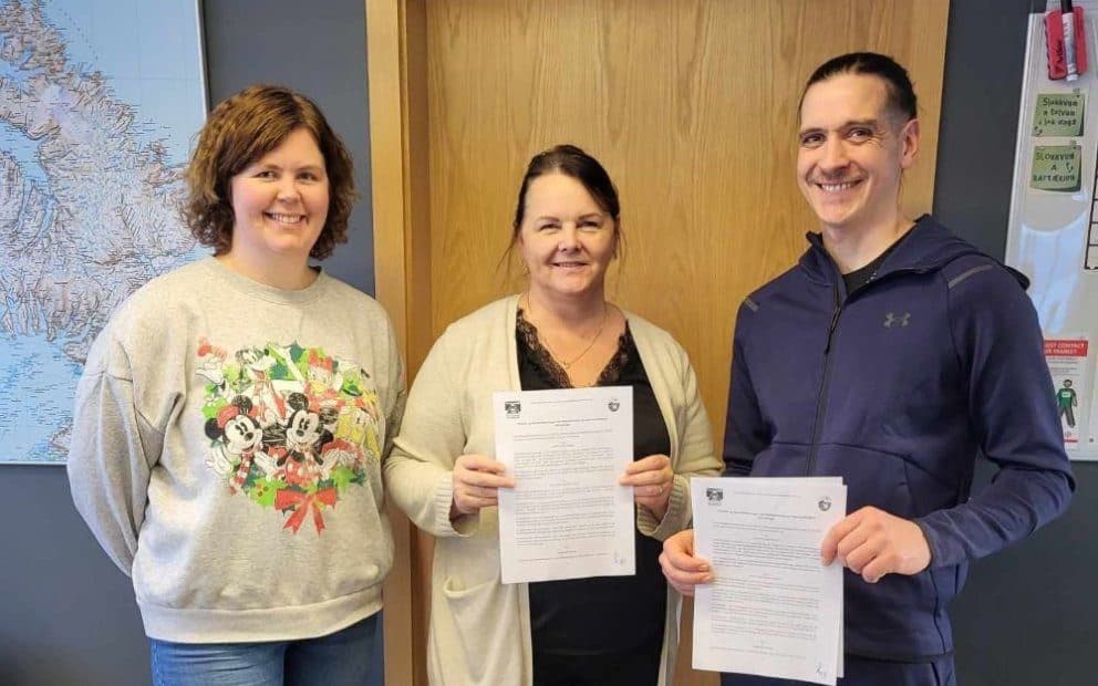 Við undirritun samningsins: Sandra Rún Björnsdóttir frá UMFA, Ingibjörg Birna Erlingsdóttir sveitarstjóri og Styrmir Sæmundsson formaður UMFA. Ljósm. reykholar.is