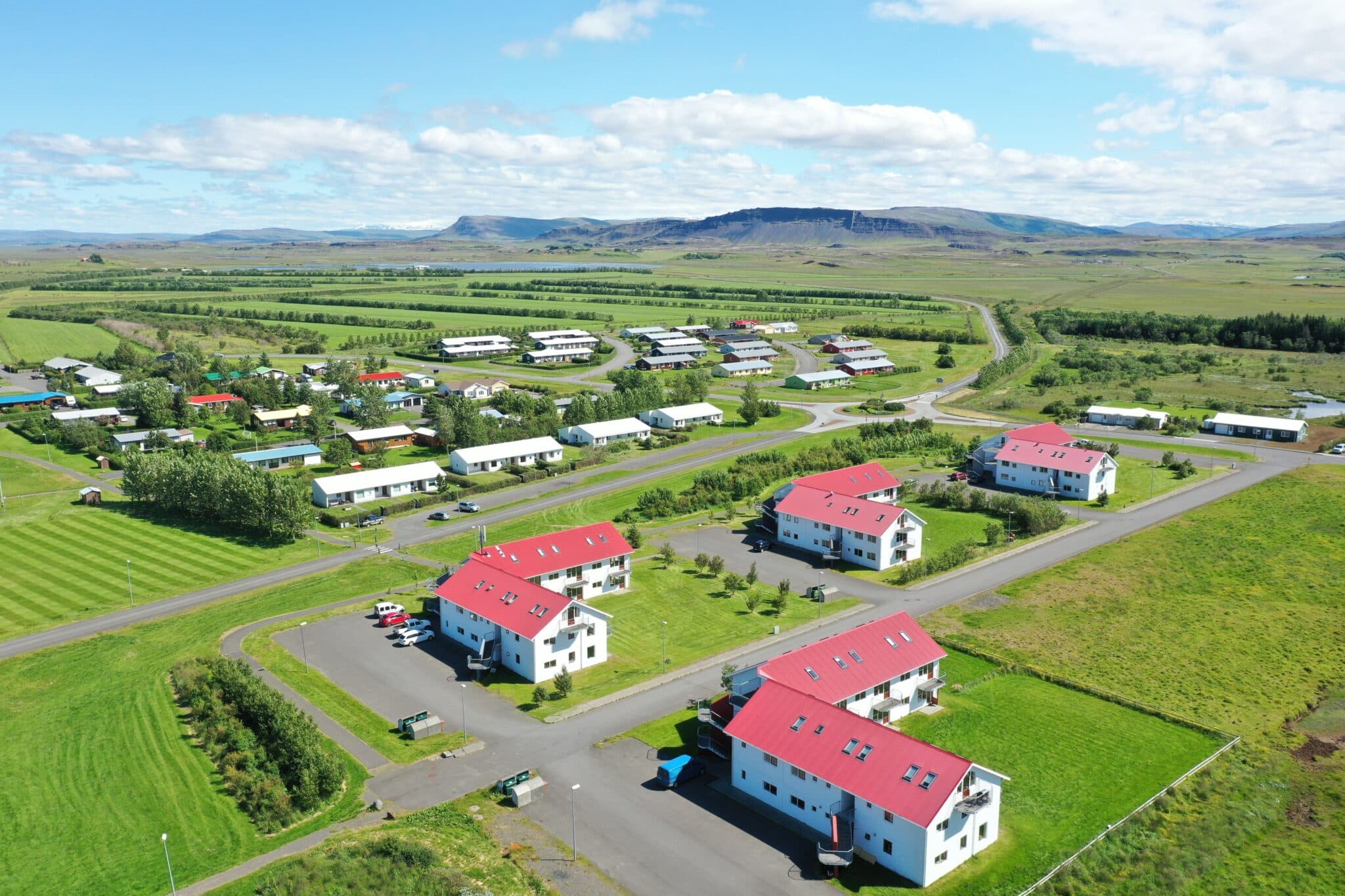 Núverandi nemendagarðar á Hvanneyri eru fremst á myndinni. Ljósm. mm