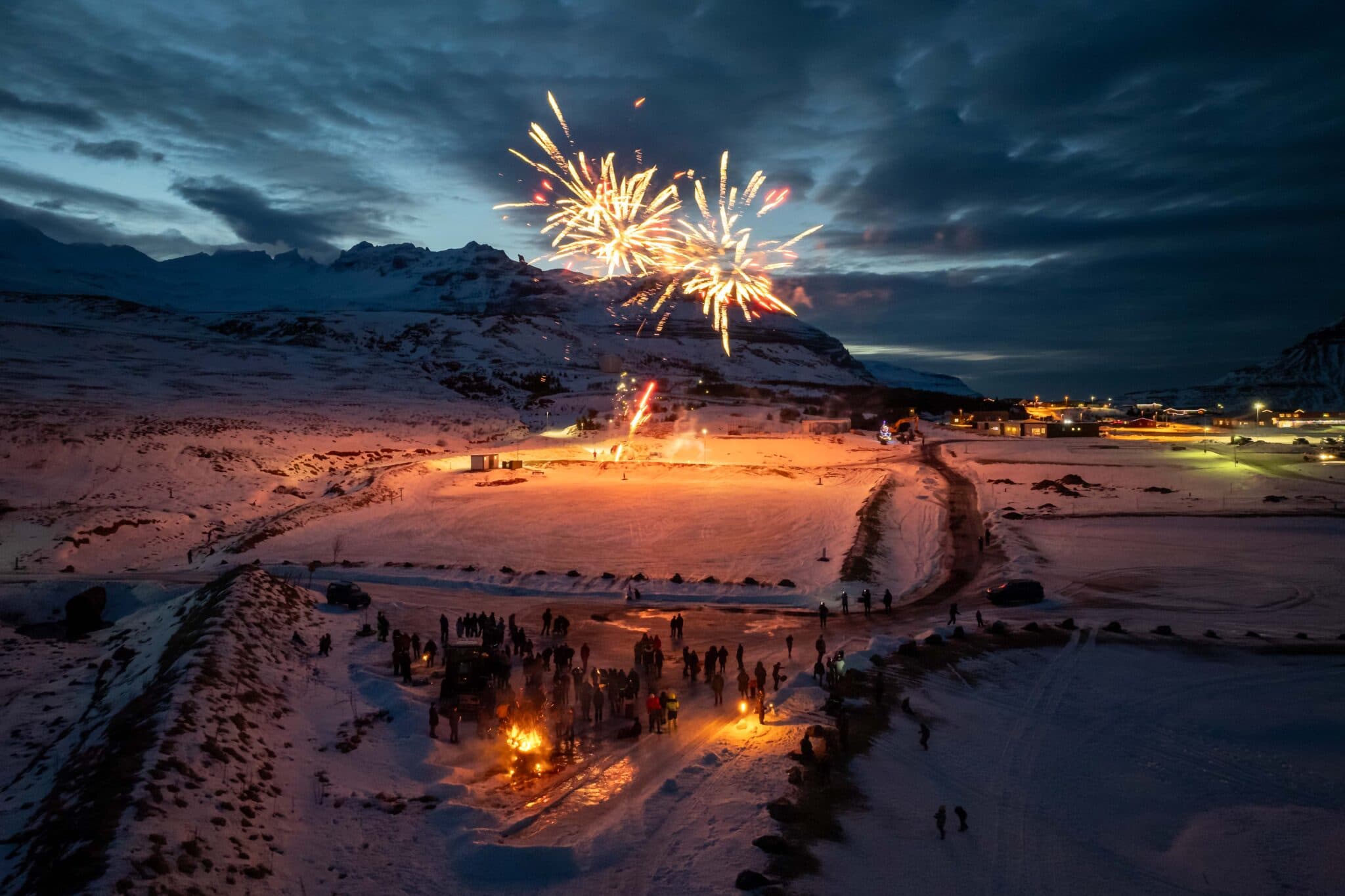 Jólin voru kvödd í Grundarfirði eins og annarsstaðar síðasta laugardag. Þá var gengin stutt blysför frá Dvalarheimilinu Fellaskjóli niður á íþróttasvæði þar sem kveikt var í brennu, dansað og sungið. Björgunarsveitin Klakkur stóð svo fyrir glæsilegri flugeldasýningu gestum til mikillar gleði.
