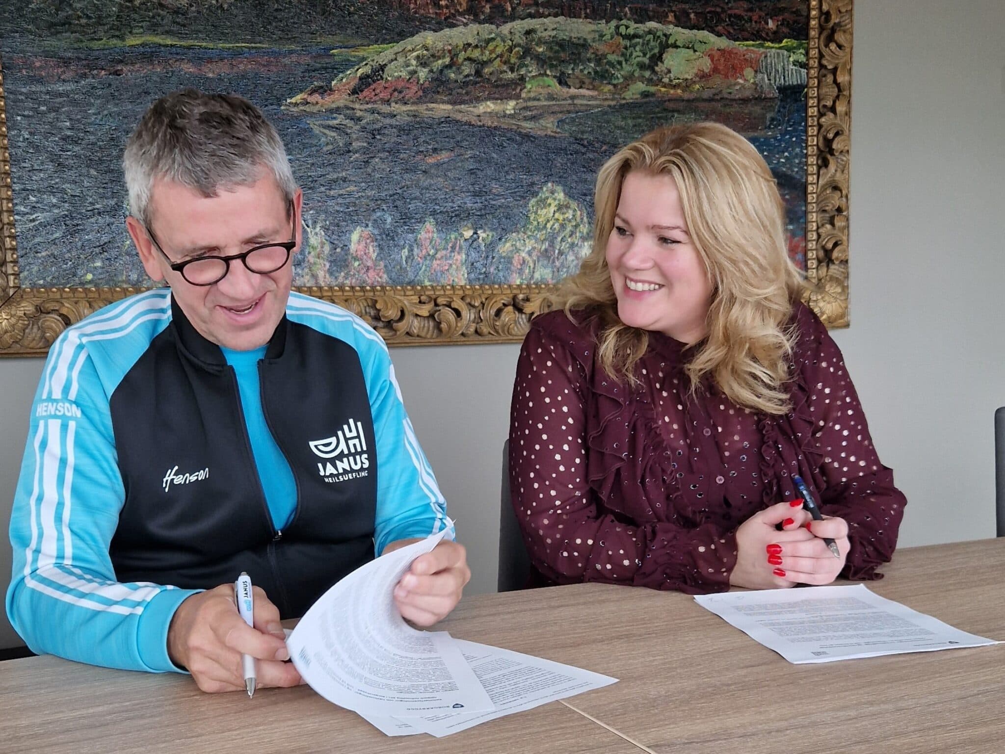 Guðveig Eyglóardóttir forseti sveitarstjórnar Borgarbyggðar og Janus Guðlaugsson skrifuðu undir samninginn í október.