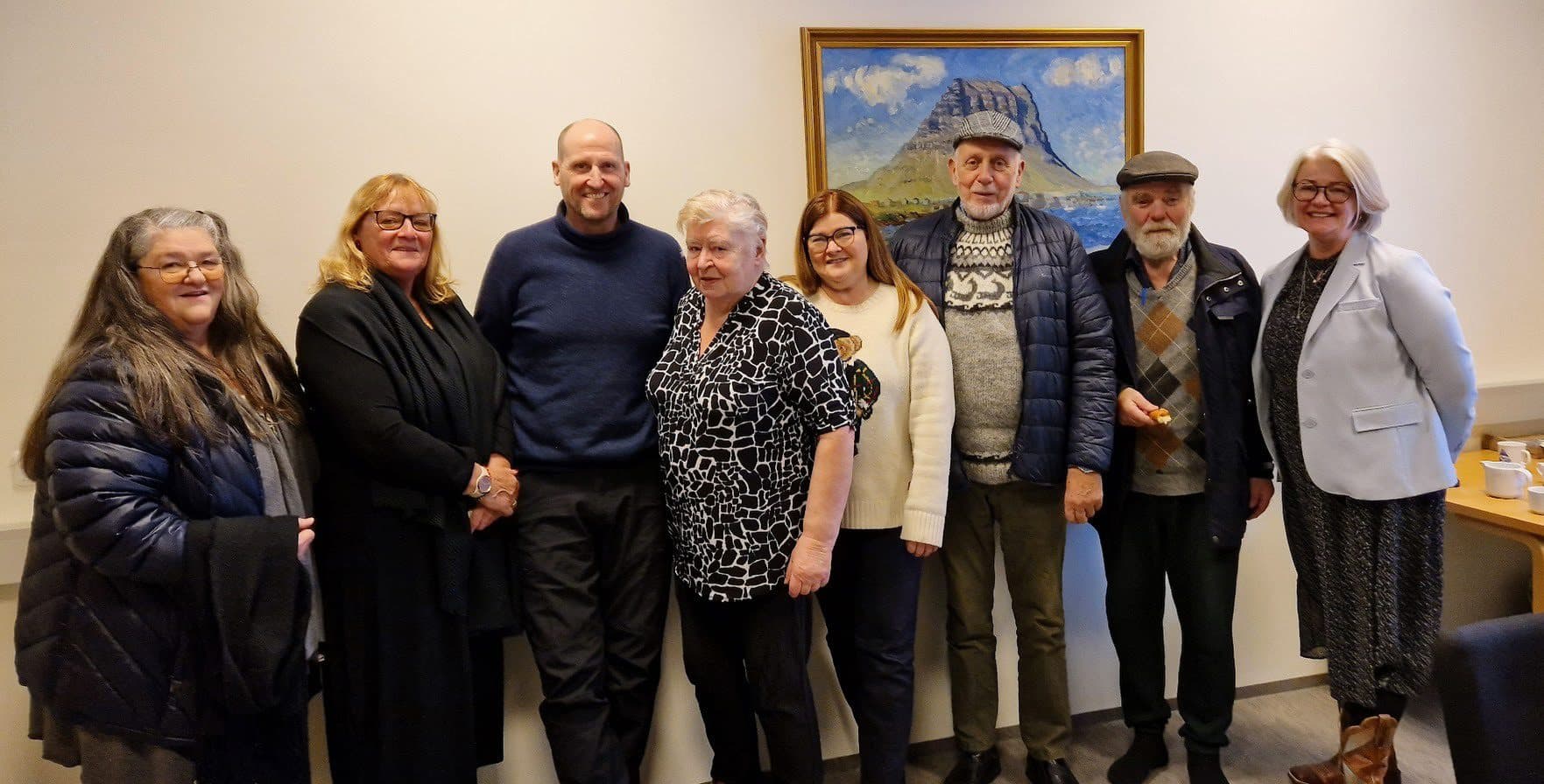 Á myndinni eru frá vinstri: Sunneva, Ragnheiður, Ólafur Ólafsson, Þórunn Kristinsdóttir, Olga Sædís Aðalsteinsdóttir, Runólfur Guðmundsson, Ólafur Guðmundsson og Björg Ágústsdóttir bæjarstjóri. Á myndina vantar Jóhönnu Níelsdóttur sem rétt slapp úr húsi áður en myndinni var smellt af. Ljósm. FB síða Grundarfjarðar