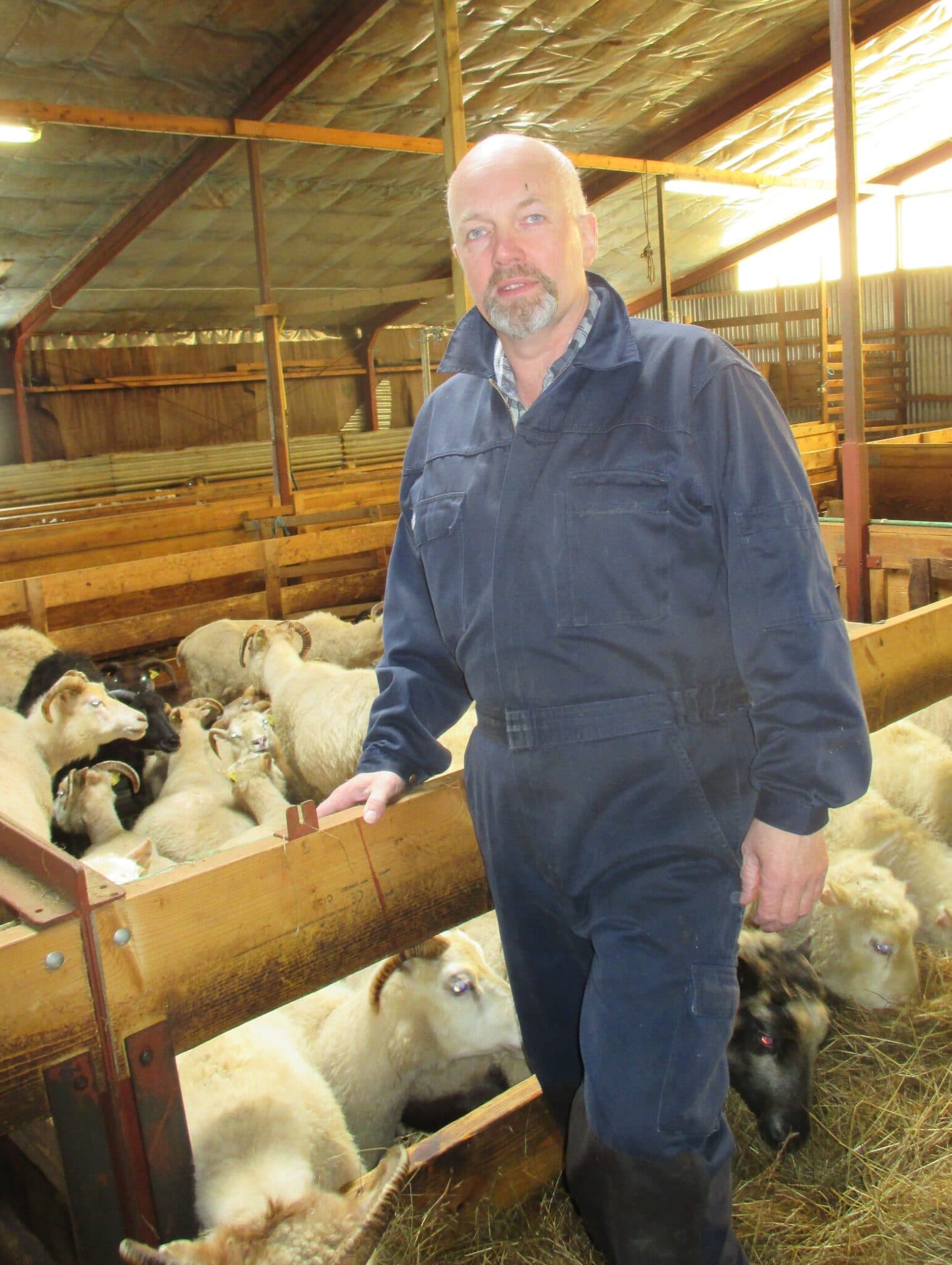 Hörður Hjartarson bóndi í fjárhúsunum. Ljósm. úr safni Skessuhorns/ þá