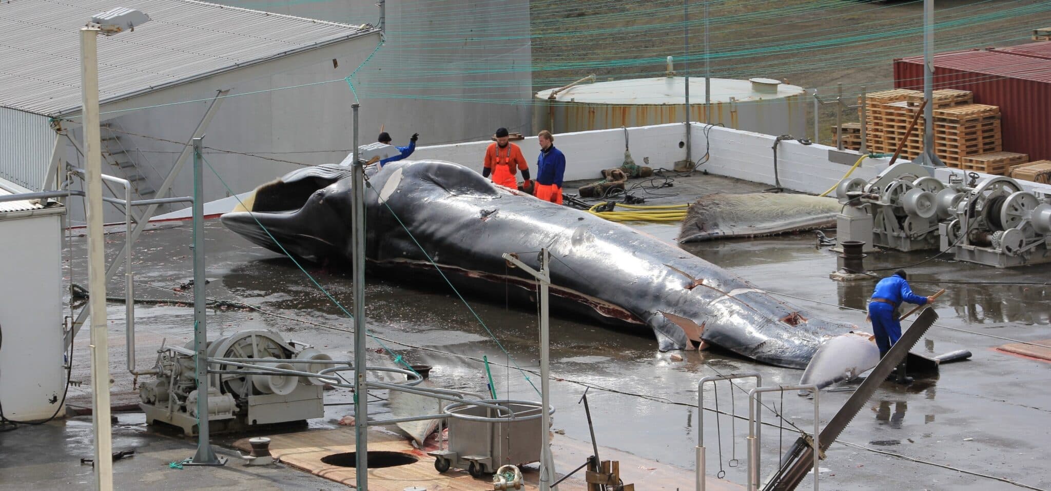 Hvalur flensaður á plani Hvalstöðvarinnar. Ljósm. úr safni/ mm