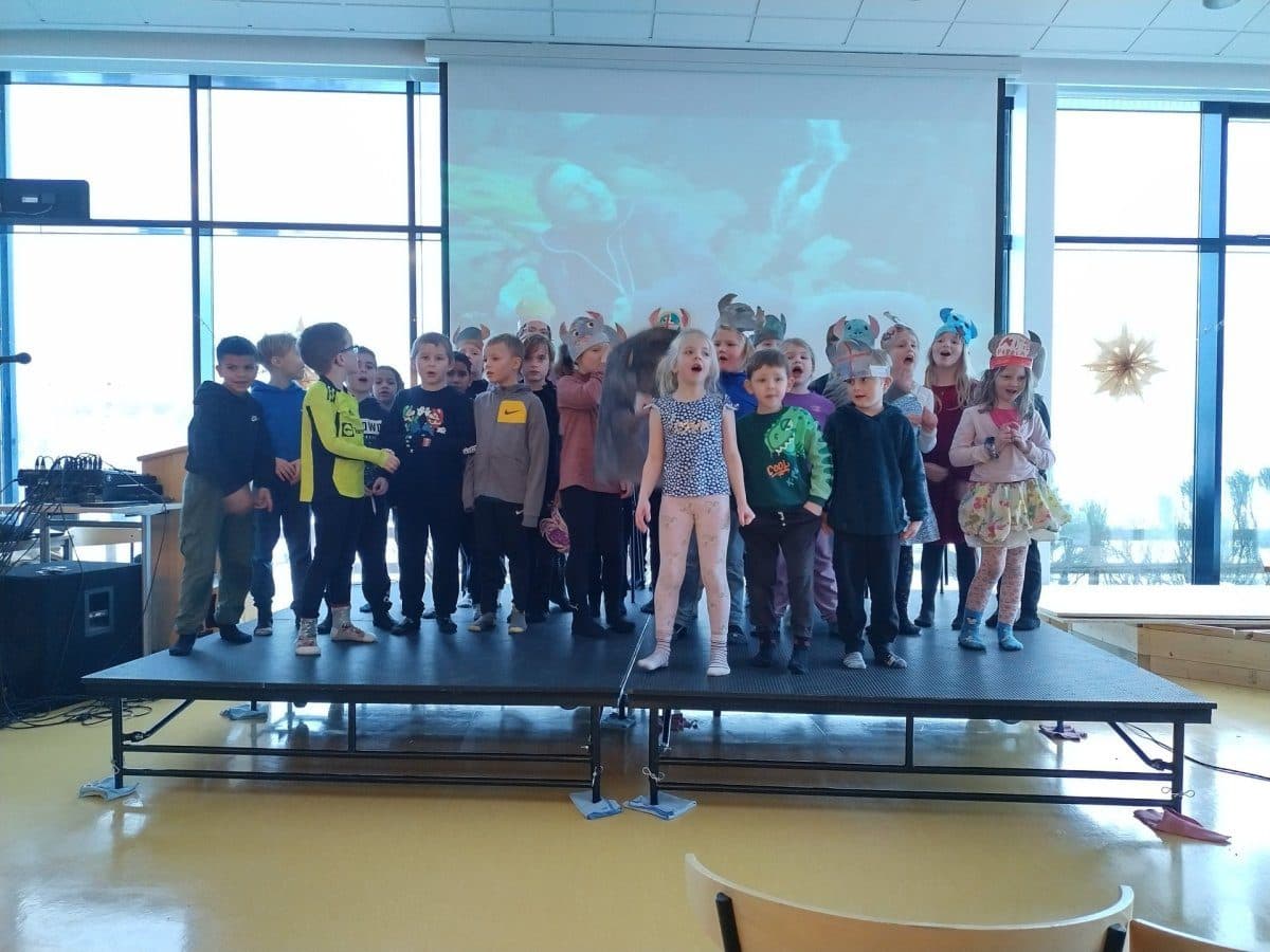 Nemendur á yngsta stigi voru með söngatriði. Ljósm. heiðarskóli
