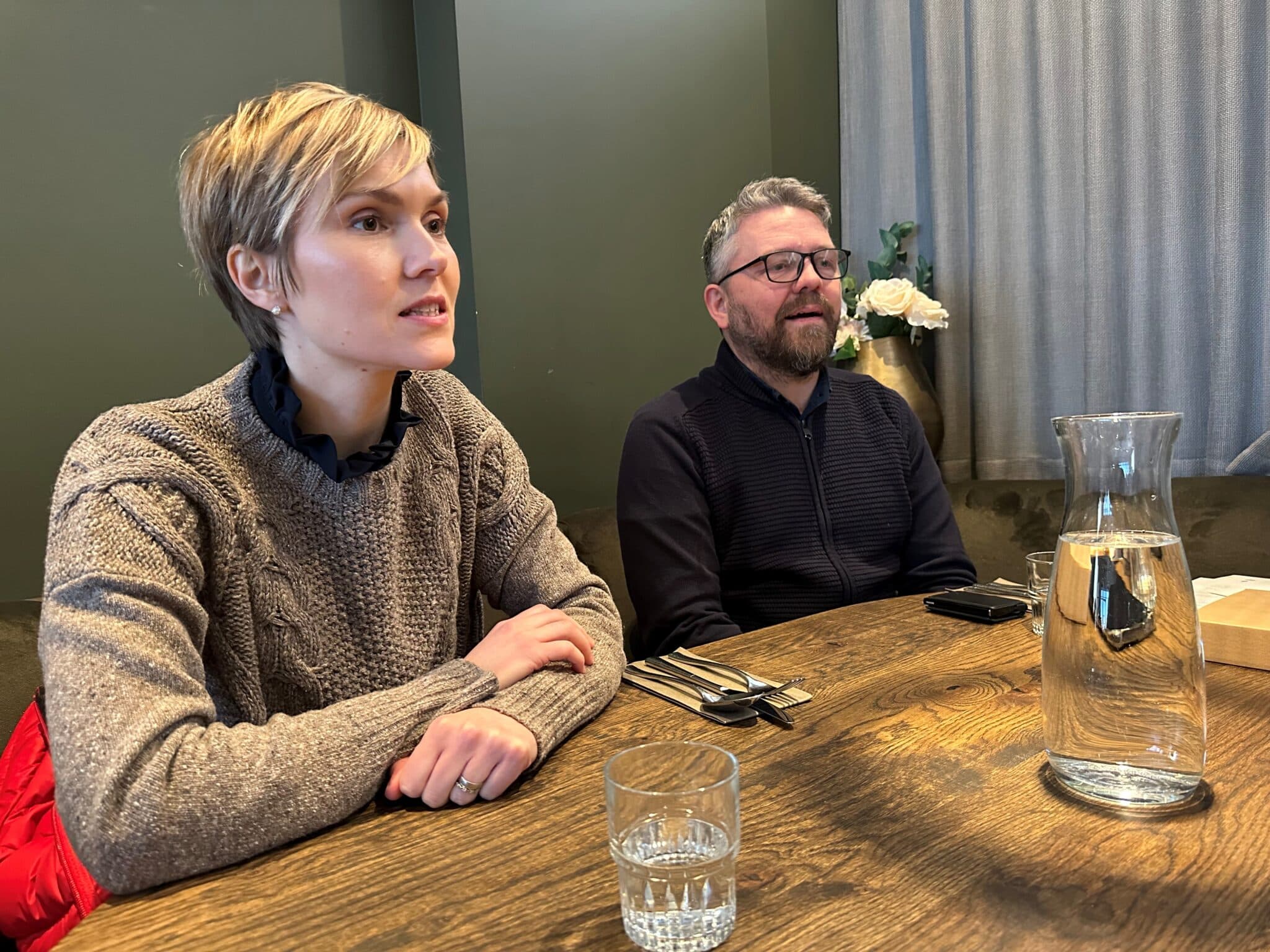 Kristrún Frostadóttir formaður Samfylkingarinnar og Valgarður Lyngdal Jónsson oddviti í bæjarstjórn Akraness. Ljósm. mm
