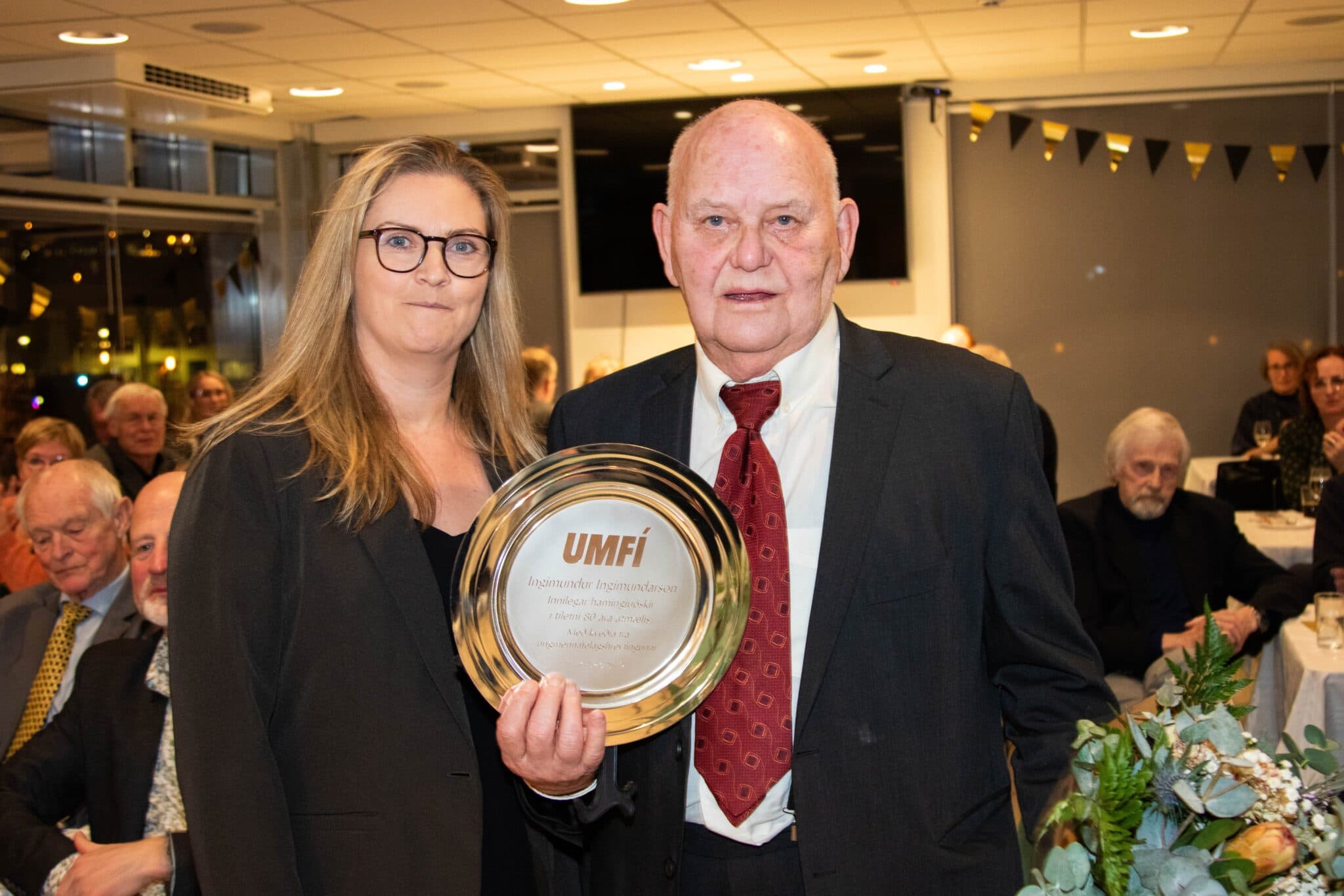 Borgnesingurinn og íþróttakennarinn Ingimundur Ingimundarson fagnaði 80 ára afmæli á laugardaginn. Veisla var haldin í sal í stúkunni hjá Breiðabliki í Kópavogi. Þar var margt um manninn og heilmikið húllumhæ. Auður Inga Þorsteinsdóttir, framkvæmdastjóri UMFÍ, kom í afmælið, flutti stutta tölu um afrek Ingimundar í gegnum tíðina og afhenti honum áritaðan skjöld í tilefni dagsins. Sagði hún m.a. að Ingimundur hafi í áranna rás fengið allar heiðursviðurkenningar fyrir störf sín í þágu ungmennafélagshreyfingarinnar og því hafi UMFÍ orðið að grípa til annarra ráða til að heiðra hann að þessu sinni.