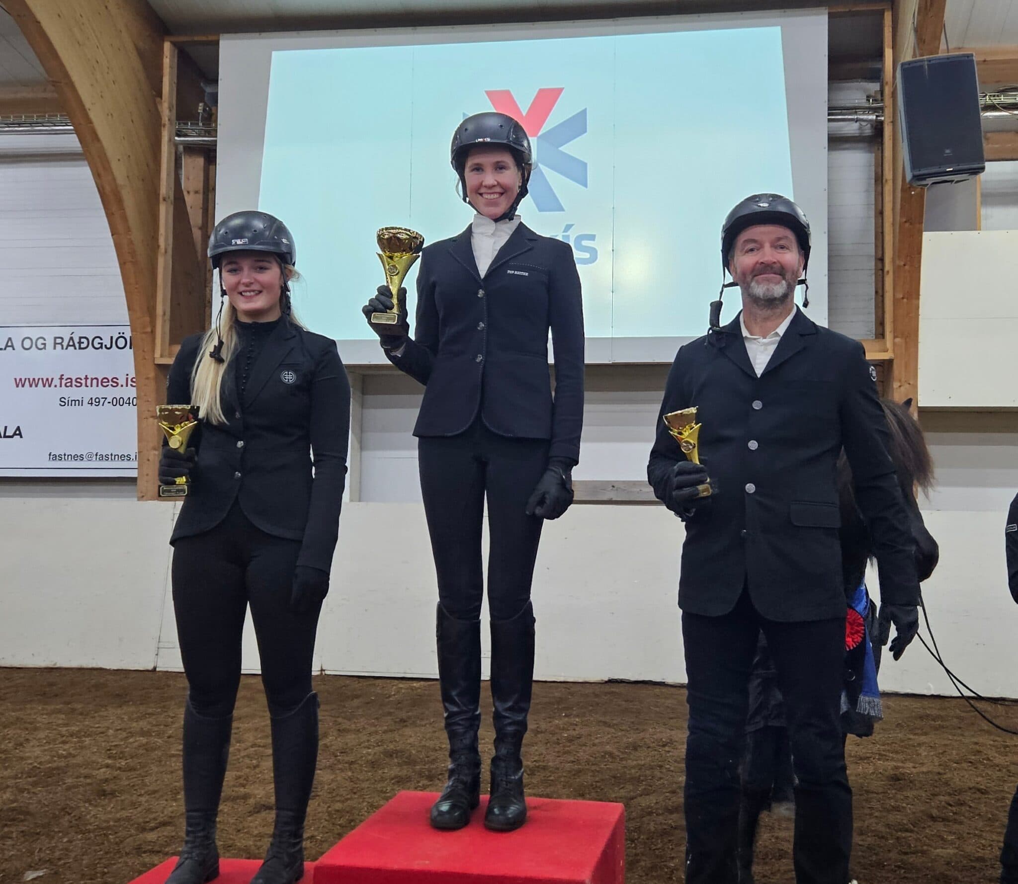 Sigurvegarar í einstaklingskeppni á verðlaunapalli. Ljósm. iss