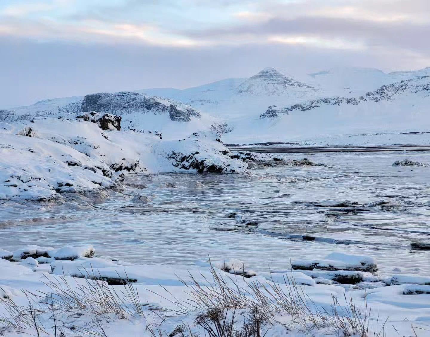 Ísilögð ströndin við Borgarnes. Ljósm. úr safni/ Guðrún Jónsdóttir