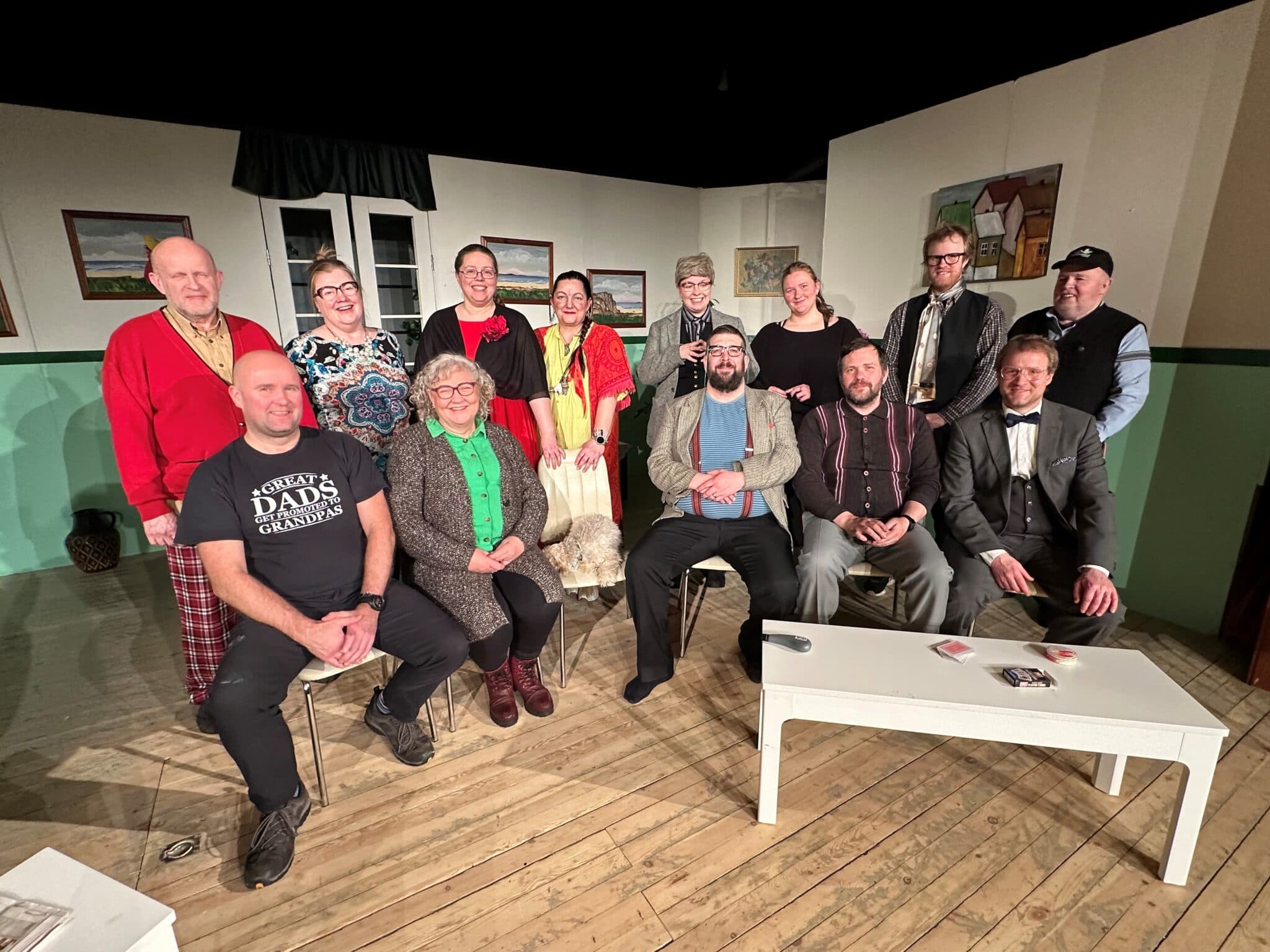Blaðamanni Skessuhorns var boðið á æfingu á leikritinu í gærkvöldi. Ellefu manns eru í hlutverkum í sýningunni en leikstjórn er í höndum heimafólks; þeirra Margrétar Jóhannsdóttur og Jónasar Þorkelssonar. Leikarar koma síðan af stóru svæði, allt frá Laugargerði í norðri og suður í Borgarnes. „Við ákváðum að þessu sinni að spara okkur leikstjóra og því tók heimafólk það verkefni að sér. Félagið þarf að rétta sig við fjárhagslega eftir erfið ár frá Covid,“ sagði leikhópurinn blaðamanni. Flestar greiðandi samkomur eins og fermingarveislur, ættarmót og afmæli féllu niður kóvidárin og er leikdeildin enn að ná vopnum sínum eftir það tímabil. Reyndar er búið að koma varmadælum fyrir í húsinu og sparast nú verulegur kostnaður við kyndingu félagsheimilisins.
