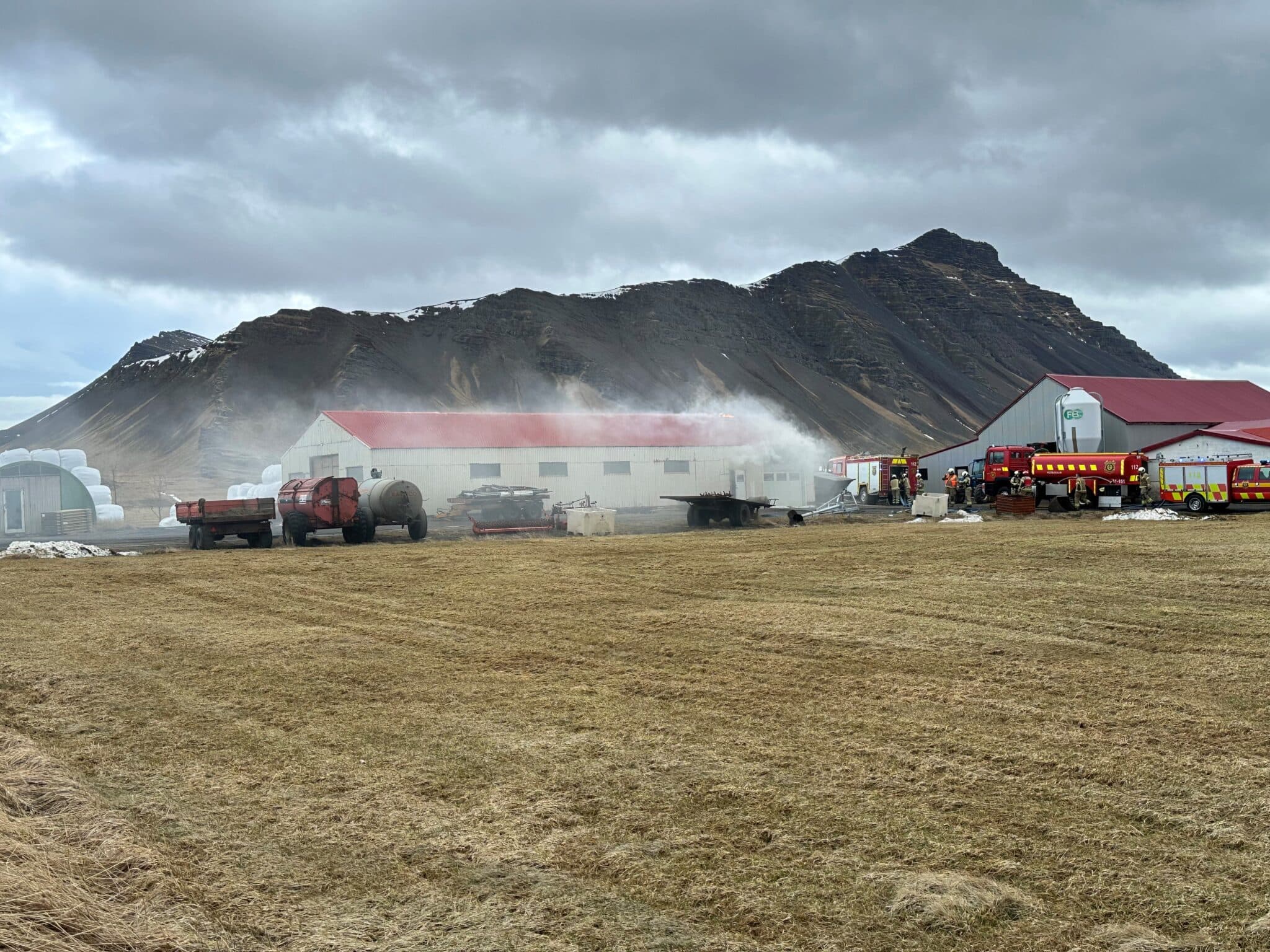 Eldur í vélaskemmu á Kjaransstöðum