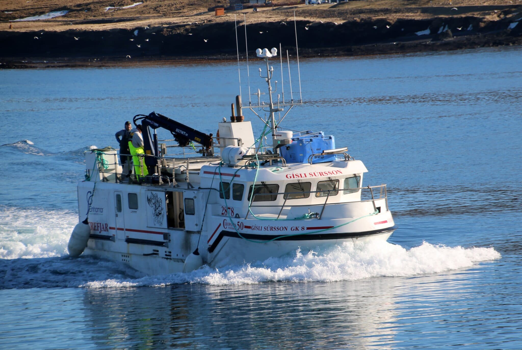 Gísli Súrsson GK kemur drekkhlaðinn að landi í Ólafsvík. Ljósmyndir: af