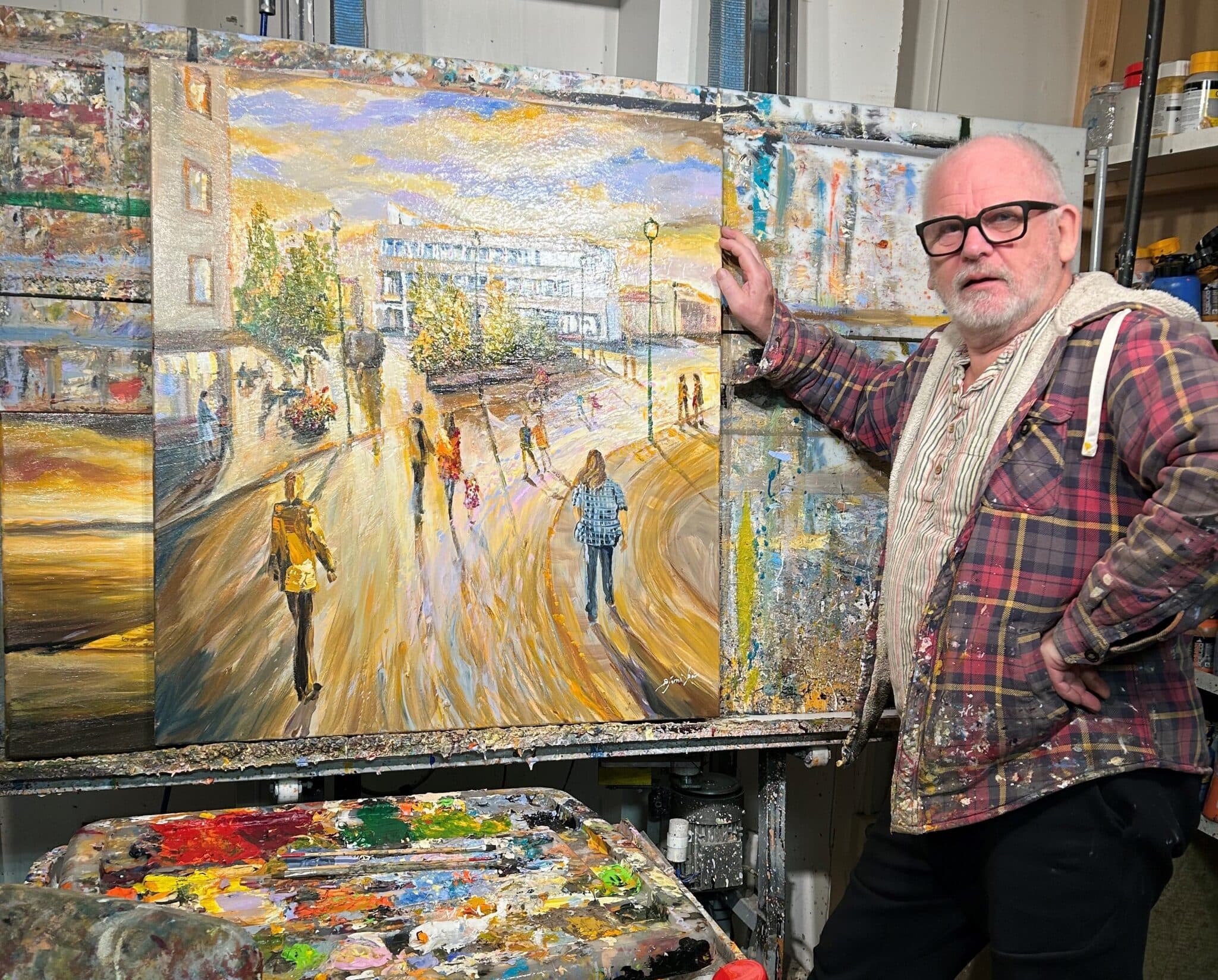 Bjarni Þór Bjarnason listmálari er búinn að mála mynd fyrir Miðbæjarsamtökin Akratorg sem seld verður hæstbjóðanda. „Það sem fæst fyrir myndina fer í að greiða kostnað við átakið Fyrsta hjálpa – Ráðhús á Akratorg. Miðbæjarsamtökin og Ásta gallerísstjóri verða við Bónus á Akranesi í dag frá kl. 13-15 og sýna myndina og safna undirskriftum til stuðnings átakinu. Tilgangur samtakanna er að vernda, efla og byggja upp gamla miðbæinn fyrir alla Akurnesinga með öllum tiltækum ráðum,“ segir í tilkynningu. Tilboð í málverk Bjarna sendist á: akratorg@gmail.com
