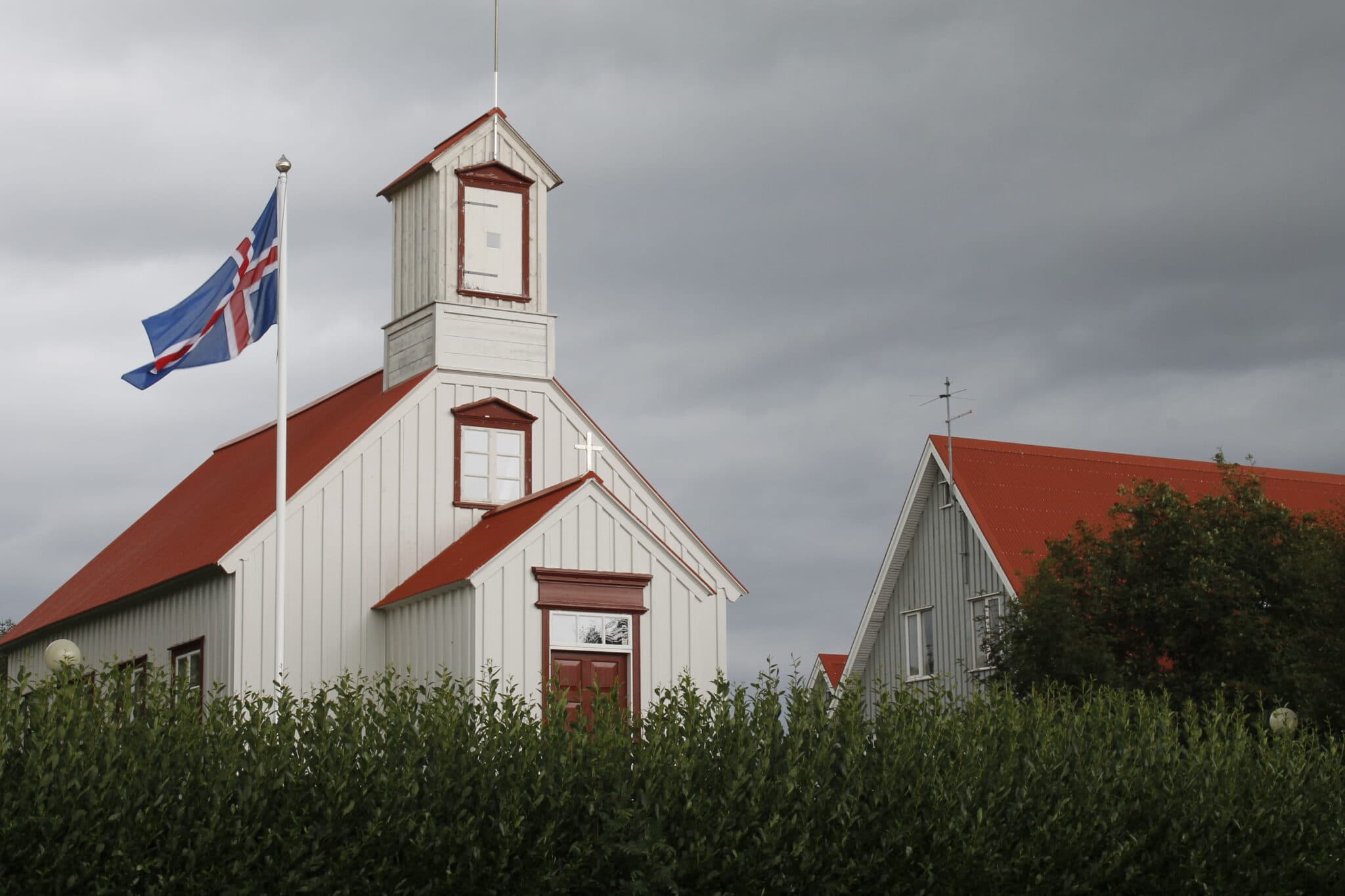 Borgarkirkja þar sem helmingur gólfsins hrundi við fermingarguðsþjónustu árið 1967. Síðan hefur kirkjan öll verið gerð upp og litlar líkur á að þetta endurtaki sig í bráð. Ljósm. gj