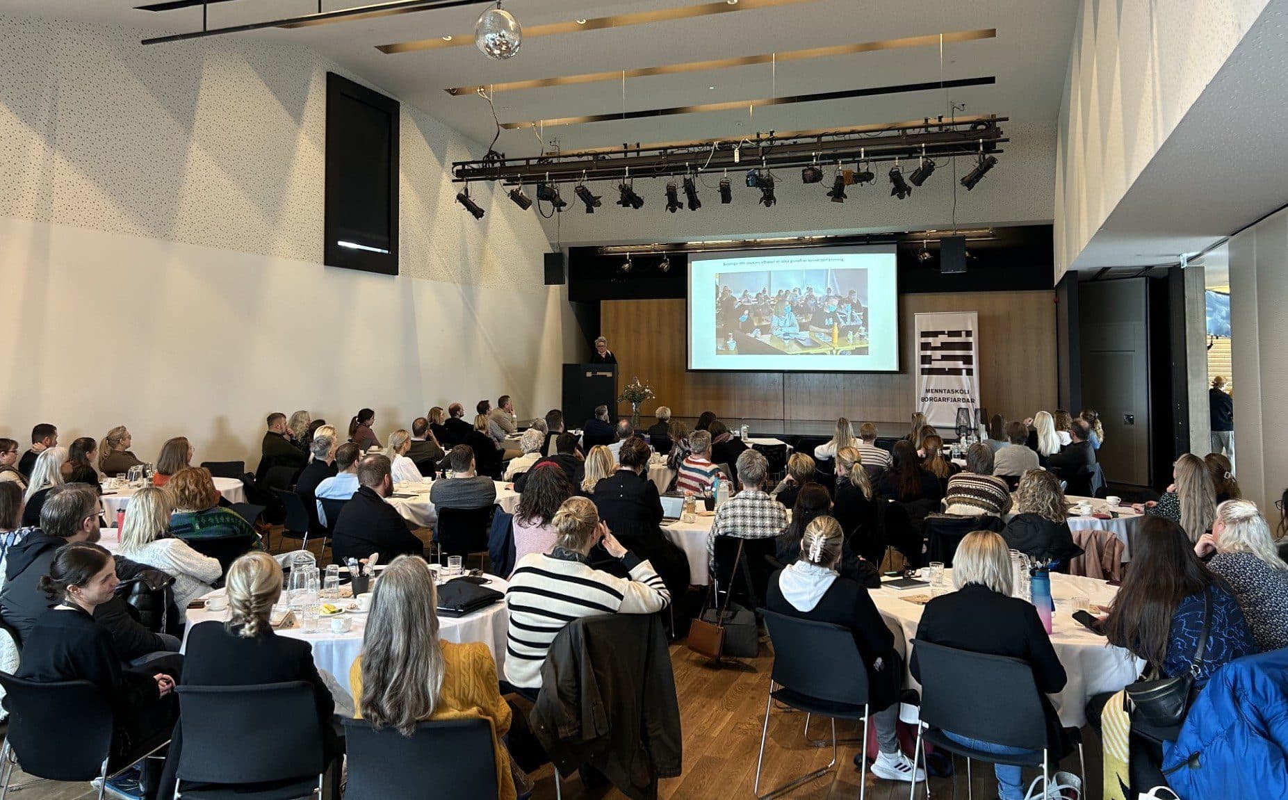 Fjölmenni var mætt í Menntaskóla Borgarfjarðar í gær en þá var haldin ráðstefna um nýsköpun í skólastarfi. Bragi Þór Svavarsson, skólameistari Menntaskóla Borgarfjarðar, setti ráðstefnuna með stuttu erindi um nýsköpun, framsýni og hversu mikilvægt það er að tala hátt um það góða sem er í gangi í skólum víðs vegar um landið.