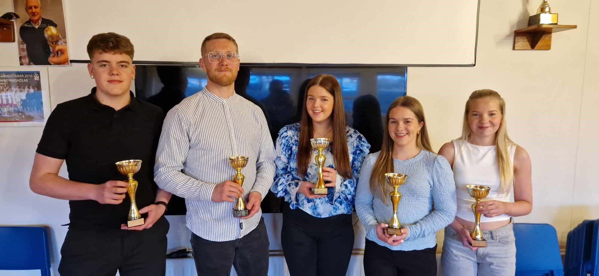 Hluti verðlaunahafa kvöldsins. F.v: Magni Blær, Snjólfur, Alfa Frost, Dagný Inga og Katrín Mjöll. Ljósm. fb.