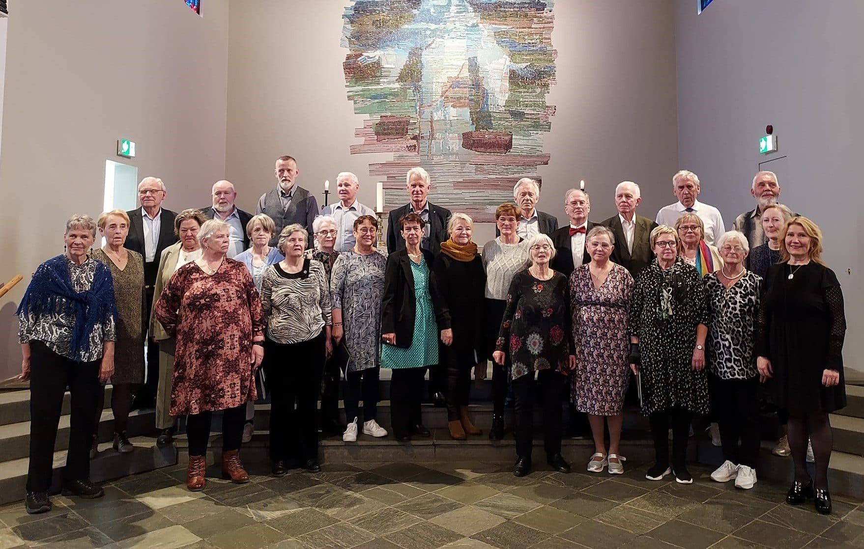 Gleðigjafar, kór eldri borgara í Borgarnesi og nágrenni, lauk vetrarstarfinu laugardaginn 11. maí með þátttöku í kóramóti í Skálholti. Þar voru saman komnir fjórir kórar eldri borgara af Suðurlandi og voru borgfirsku Gleðigjafarnir gestir þeirra. „Mótið var ánægjulegt í alla staði. Eftir söng hvers kórs tók við samsöngur sem fyllti Skálholtskirkju, sem er dásamlegt tónleikahús. Eftir mótið var drukkið kaffi í Aratungu í Reykholti þeirra Sunnlendinga,“ segir Hólmfríður Friðjónsdóttir stjórnandi kórsins.