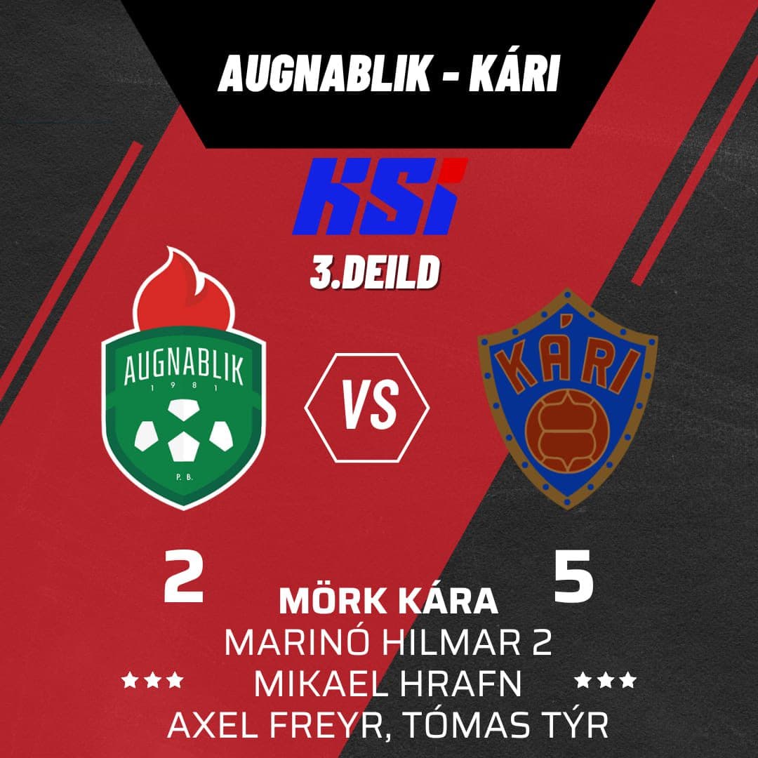 Káramenn frá Akranesi gerðu góða ferð í Kópavoginn í gærkvöldi og lögðu þar lið Augnabliks örugglega að velli 5:2 í leik í þriðju deild karla í knattspyrnu.