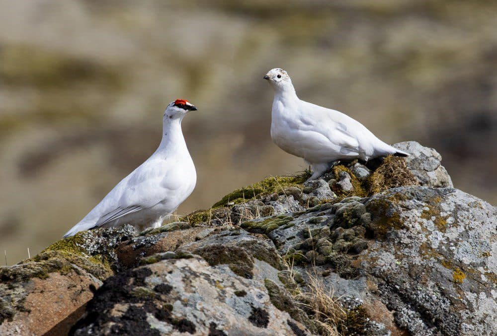 Rjúpnahjón á steini. Ljósm. Jóhann Óli Hilmarsson.