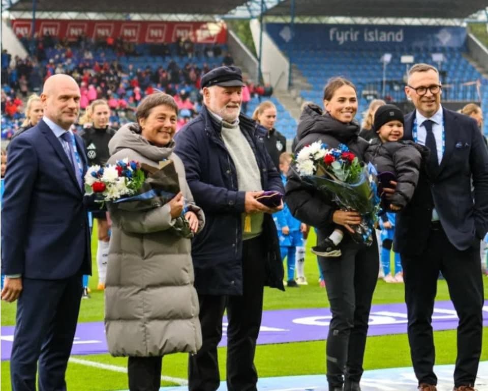 Heiðraðar fyrir landsliðsþátttöku fyrir frækinn landsleik í gær