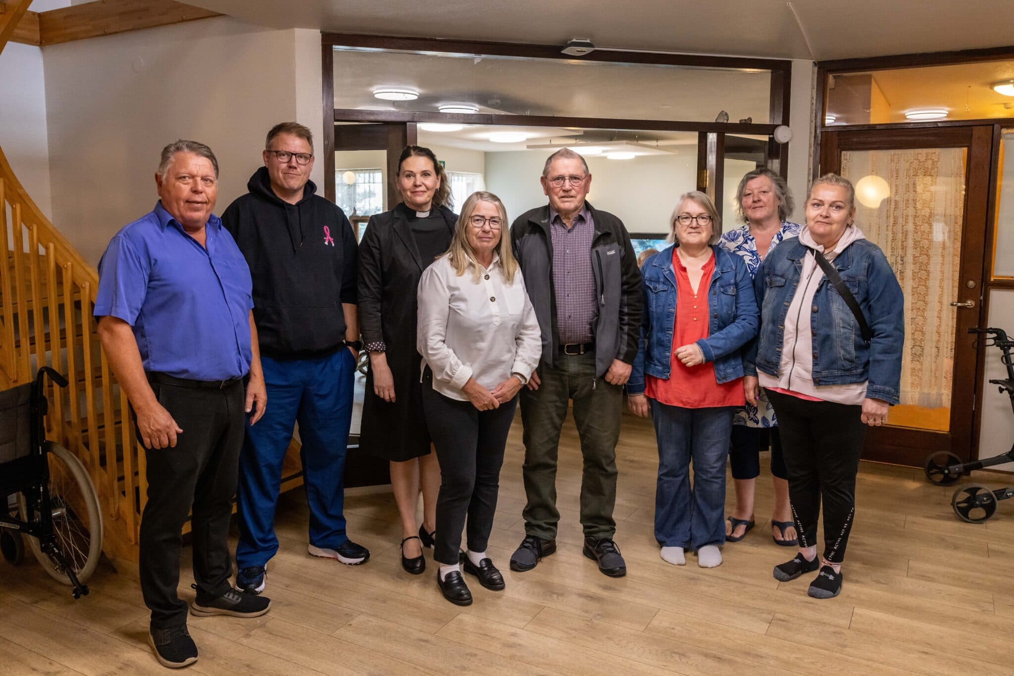 F.v. Kristján Guðmundsson umsjónarmaður sjóðsins, Aðalsteinn Jósepsson formaður sóknarnefndar, séra Laufey Brá Jónsdóttir sóknarprestur, Ragnheiður Þórarinsdóttir, Guðni E. Hallgrímsson, Anna Júlía Skúladóttir starfsmaður Fellaskjóls, Patricia Laugesen forstöðumaður Fellaskjóls og Jóhanna Björk Hallbergsdóttir fomaður Kvenfélagsins Gleym mér ei. Ljósm. tfk