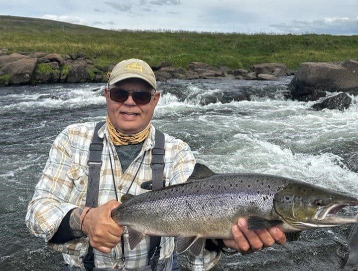 Hilmar Hansson með flottan lax úr Laxá í Dölum.