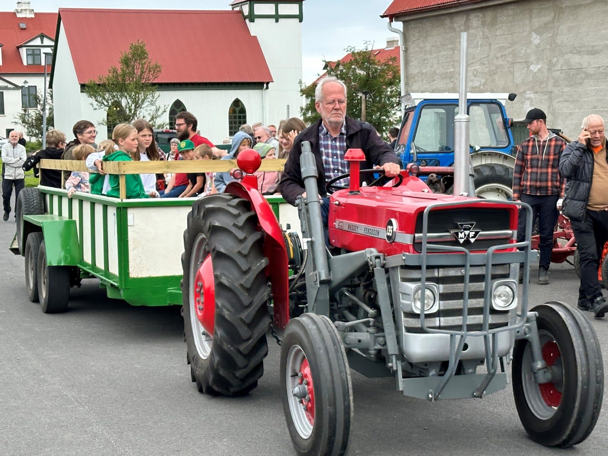 Í gær var boðið upp á svokallaðan Ferguson dag á Landbúnaðarsafni Íslands á Hvanneyri. Þetta var þriðji slíki dagurinn í sumar og sá fjölmennasti. Blíðskaparveður var í Borgarfirði og streymdi að fólk úr ýmsum landshlutum, meðal annars bændur sem nýttu tímann milli slátta til að gera sér dagamun og hitta mann og annan.