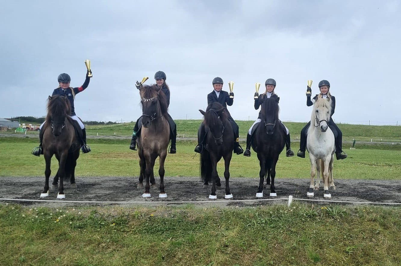 Sigurvegarar í tölti barnaflokks á Íþróttamóti Dreyri. Ljósm. mkg