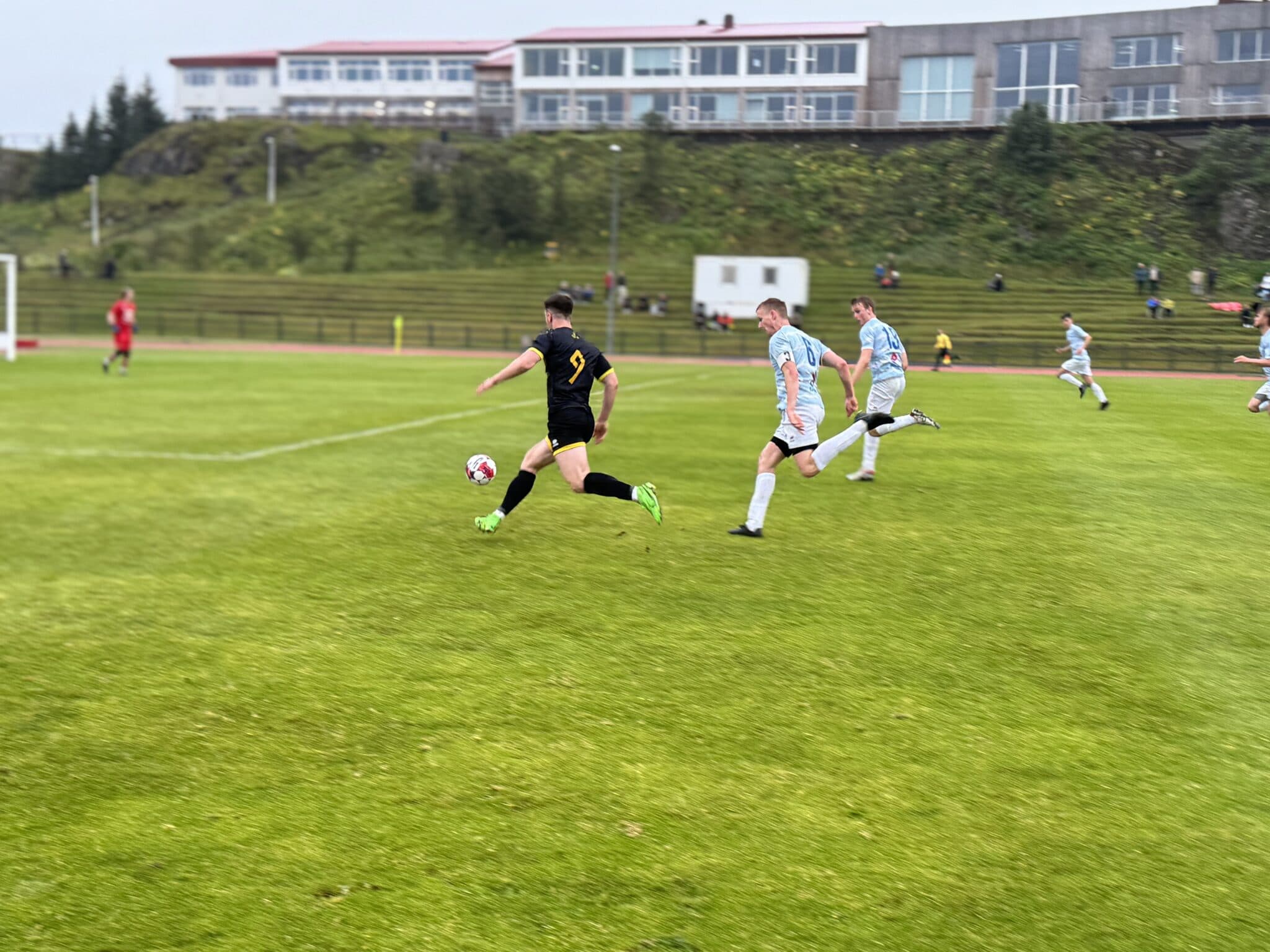 Sölvi Snorrason er kominn með 12 mörk í deildinni í sumar. Hér er hann að leika á varnarmenn Kríu á Skallagrímsvelli.