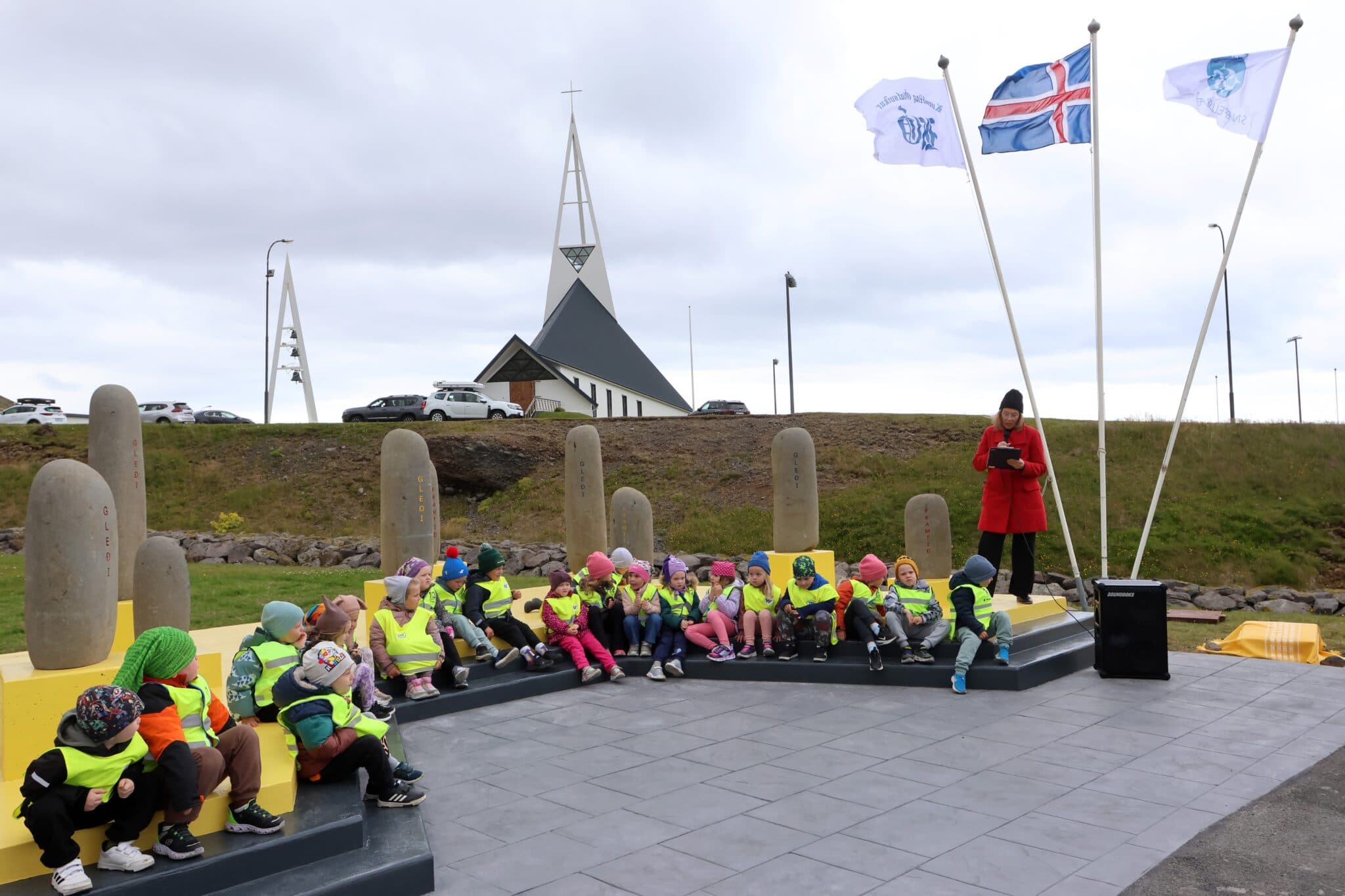 Kvenfélag Ólafsvíkur vígði í gær útilistaverkið Gleði-Framtíð eftir Sigurð Guðmundsson listamann við Gilið, skammt frá leikskólanum Krílakoti. Verkið er sett upp til að minnast þess að félagið stofnaði og rak fyrsta leikskólann í Ólafsvík. Verk Sigurðar er einstaklega skemmtilegt og litríkt en það er hannað með börn í huga. Það var því vel til fundið að leikskólabörn tóku virkan þátt í vígslu þess.
