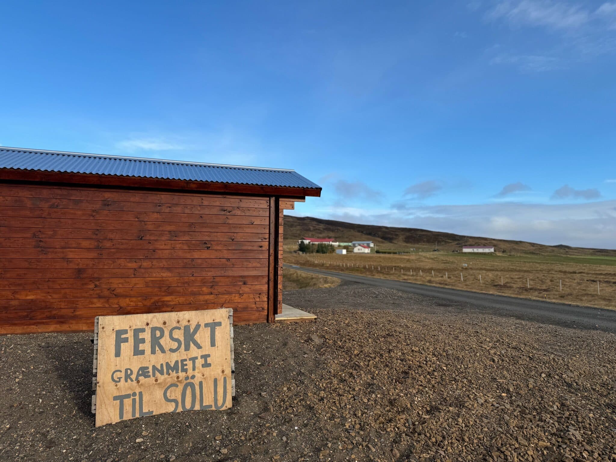 Sjálfsafgreiðsluskúrinn er staðsettur við afleggjarann að bænum Ásgarði. Ljósm. hig