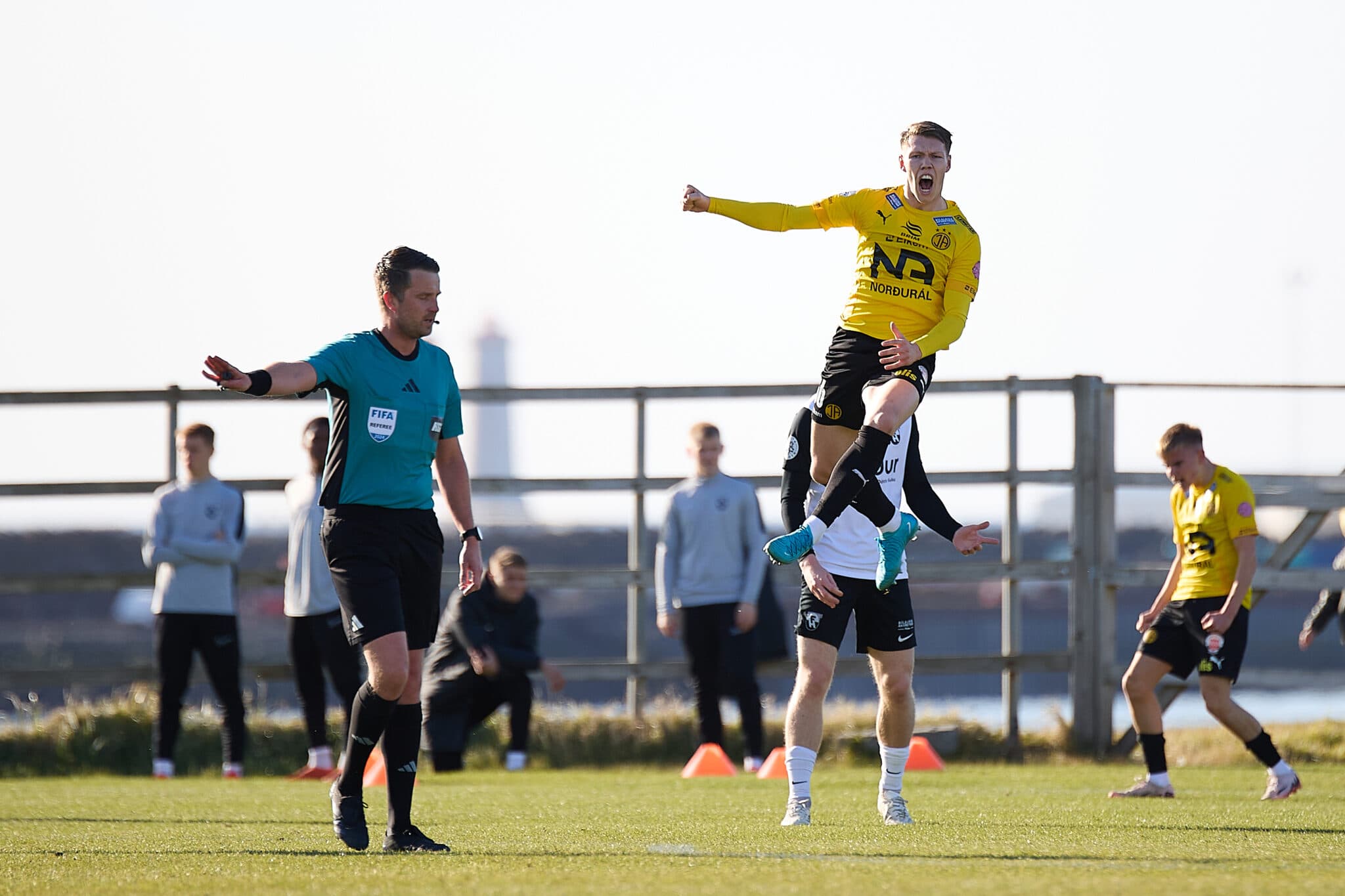 ÍA og FH mættust í þriðju umferð efri helmings Bestu deildar karla í knattspyrnu í gær og var leikurinn á Elkem vellinum á Akranesi. Þetta byrjaði með látum því strax á fyrstu mínútu leiksins komust gestirnir yfir með marki frá Kjartani Kára Halldórssyni sem þrumaði boltanum í nærhornið úr aukaspyrnu og fór boltinn í Árna Marinó markmann ÍA og inn. Skagamenn virtust slegnir við markið en voru fljótir að átta sig og á 10. mín jöfnuðu þeir metin. Steinar Þorsteinsson átti þá fyrirgjöf sem Viktor Jónsson skallaði í netið af stuttu færi og 17. mark Viktors í sumar staðreynd. Aðeins þremur mínútum síðar voru Skagamenn aftur á ferðinni þegar Haukur Andri Haraldsson náði boltanum af leikmanni Stjörnunnar, hann fór upp að endalínu og sendi boltann fyrir þar sem Jón Gísli Eyland kom aðvífandi og þrumaði boltanum upp í þaknetið. Heimamenn voru alls ekki hættir því á 21. mínútu leiksins kom þriðja mark þeirra þegar Johannes Vall fékk sendingu frá Hauki Andra, hann komst inn fyrir vörn FH einn á móti Daða Frey Arnarssyni, markverði FH, og laumaði boltanum snyrtilega framhjá honum. Þrátt fyrir nokkur ágætis færi í kjölfarið hjá báðum liðum tókst hvorugu að skora og staðan eftir fyrri hálfleikinn, 3-1 ÍA í vil.