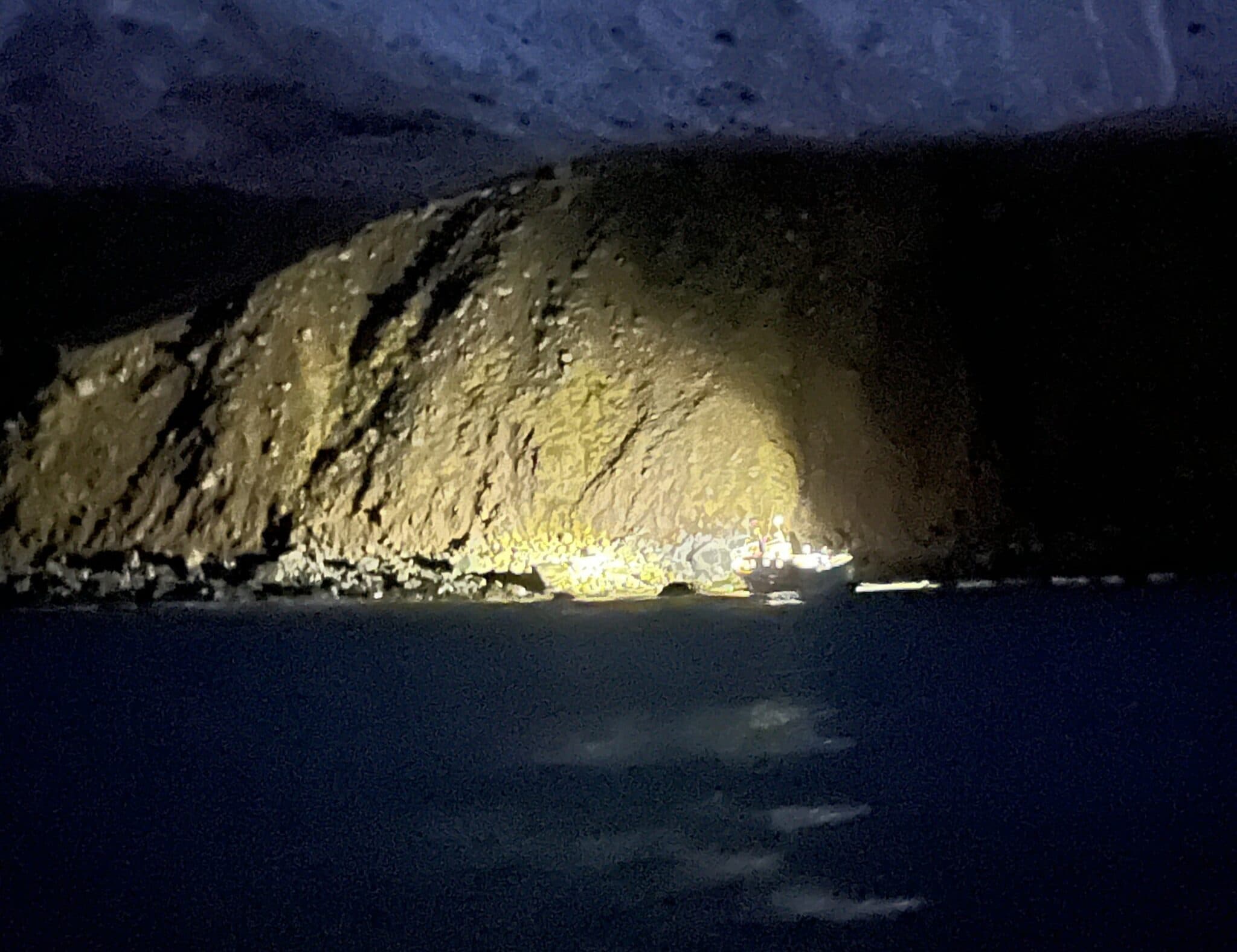 Báturinn í flæðarmálinu í morgun. Ljósm. Landsbjörg