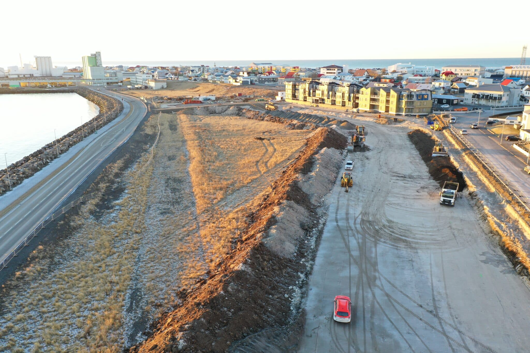 Gatnaframkvæmdir hófust í lok júlí í sumar á Sementsreitnum á Akranesi. Þar er verið að vinna að gatnagerð fyrir lóðir á austurhluta svæðisins. Gatnagerðin er á vegum Akraneskaupstaðar en lagnir eru á vegum Veitna. Aðalverktaki er jarðvinnufyrirtækið Þróttur ehf. á Akranesi. Að sögn Lárusar Ársælssonar, umhverfisstjóra Akraneskaupstaðar, hefur verkið tafist vegna breytinga sem þurfti að gera en horfur eru á að verkinu ljúki næsta vor.