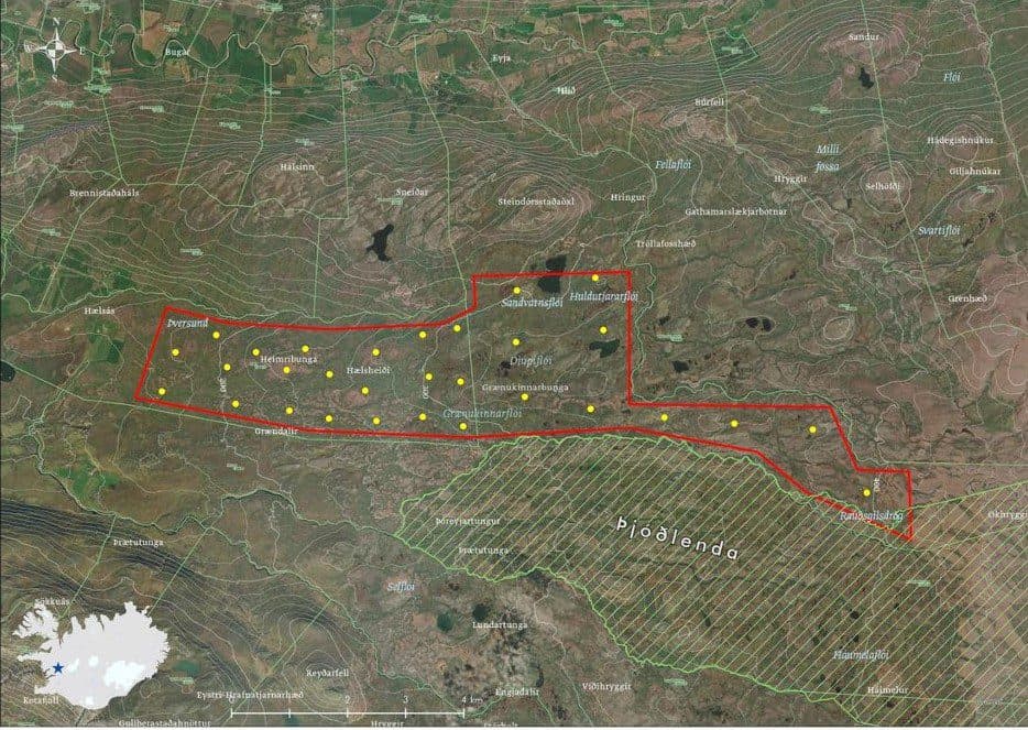 Yfirlitskort af fyrirhuguðu framkvæmdasvæði. Teikning úr matsskýrslunni.