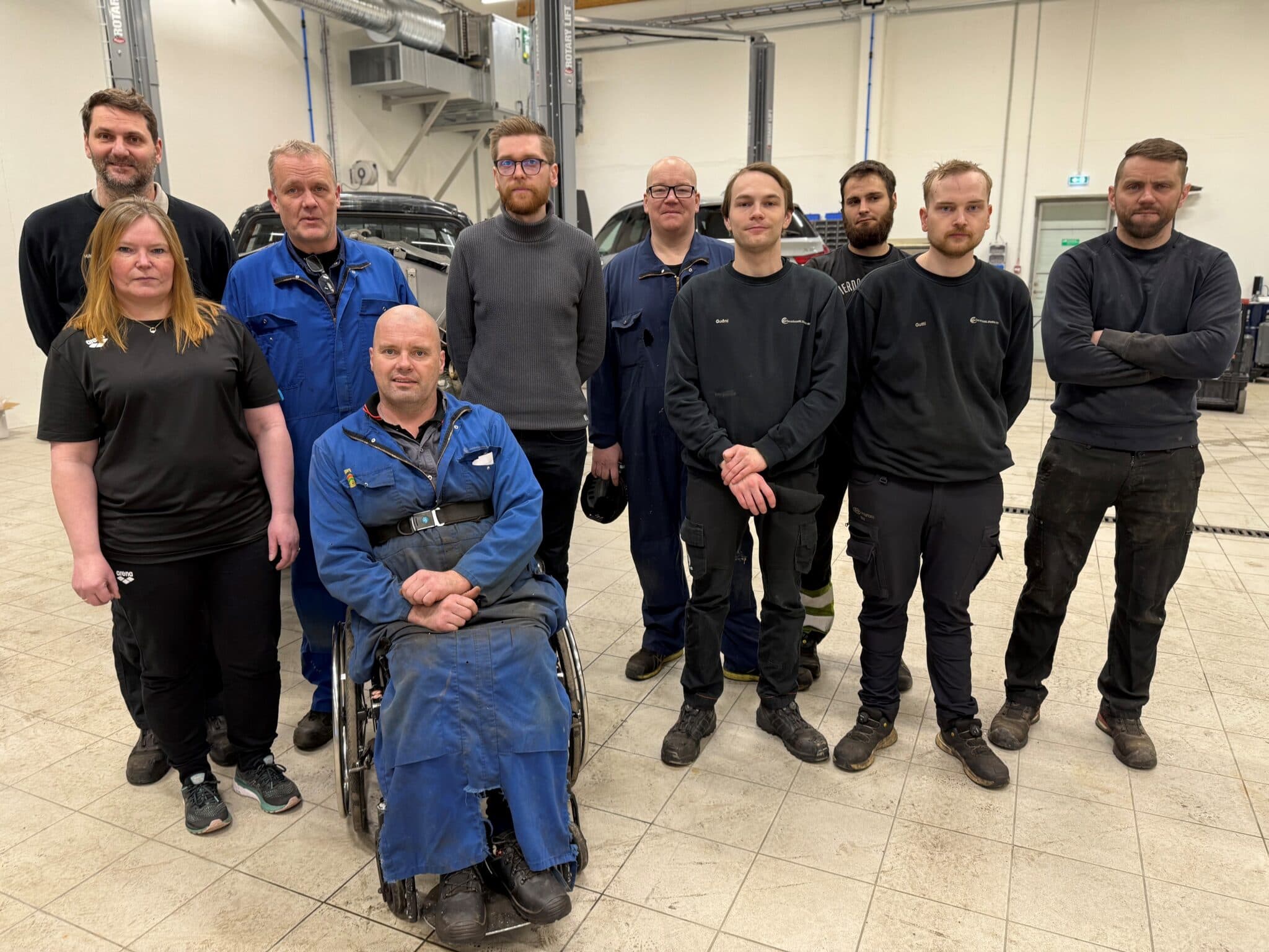 Starfsmenn Bílaverkstæðis Hjalta, en nokkrir voru í fríi þegar myndin var tekin fyrr í dag. Ljósm. mm