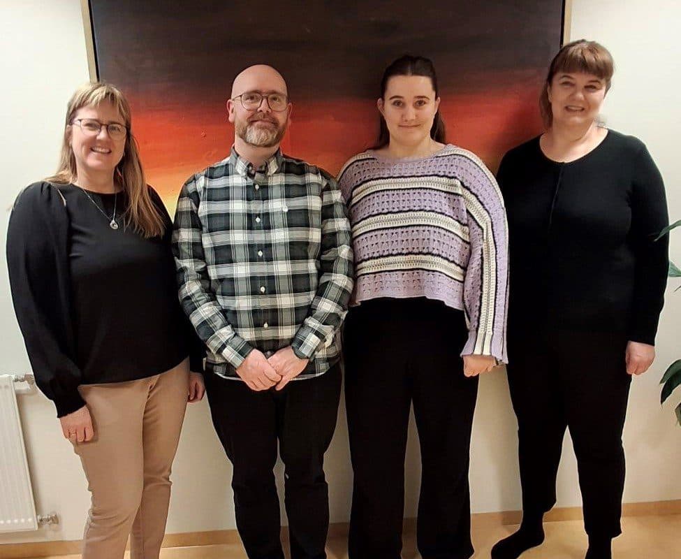Eftir undirritun samningsins. F.v. Inga Dóra Halldórsdóttir f.h. Brákarhlíðar fasteignafélags, Helgi Páll Einarsson f.h. Atlas verktaka, Dýrfinna Arnardóttir f.h. Dynju og Sigrún Ólafsdóttir formaður stjórnar Brákarhlíðar. Ljósm. aðsend