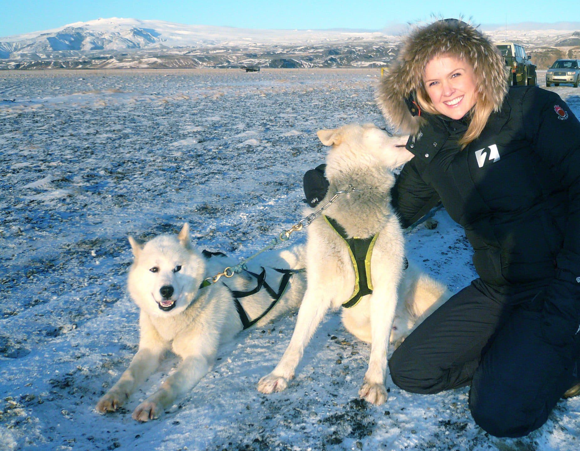 Í vinnunni fyrir Stöð 2 að fjalla um hundasleðaferðir yfir Sólheimasand. Ljósm. úr safni.