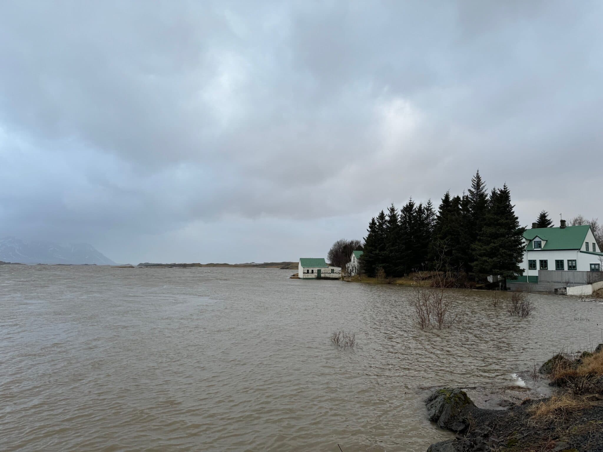 Vatn byrjað að seytla inn í kjallara í Ferjukoti