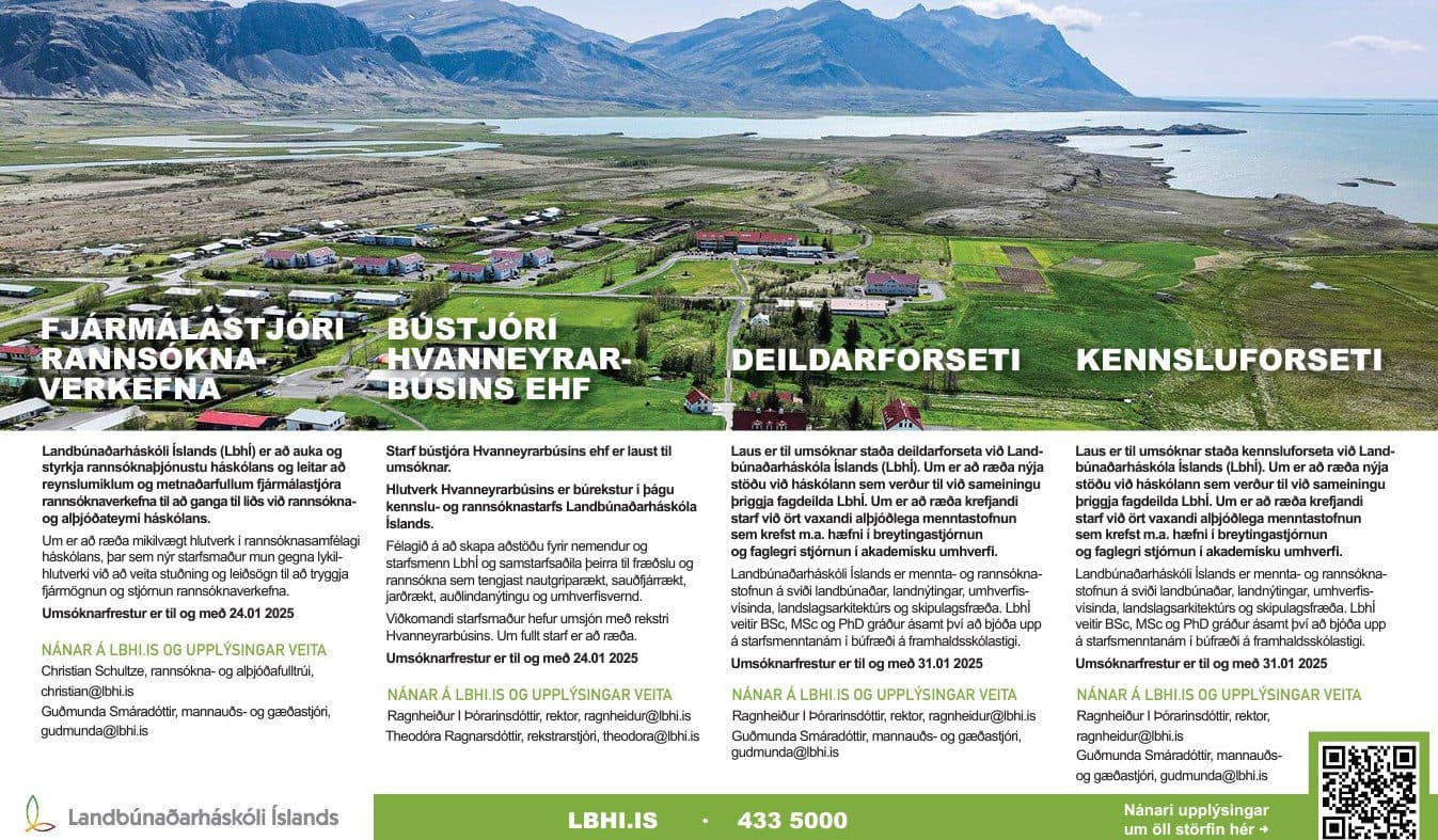Töluverðar breytingar verða á næstunni gerðar á stjórnskipulagi Landbúnaðarháskóla Íslands á Hvanneyri með sameiningu þriggja fagdeilda í eina. Auglýsing um ný störf við stofnunina eru nú í birtingu, þar sem í boði er starf fjármálastjóra rannsóknaverkefna, bústjóra Hvanneyrarbúsins auk starfa kennslustjóra og kennsluforseta skólans. Líf og land er heitið á nýrri sameinaðri deild við skólann en undir henni verður felld öll kennsla í skólanum. Síðustu árin hafa deildir skólans verið þrjár; Ræktun og fæða; Náttúra og skógur; og Skipulag og hönnun. Þær munu nú verða sameinaðar í eina. Um nýja stöðu kennsluforstjóra sameinaðrar deildar segir að við sameiningu er um að ræða krefjandi starf við ört vaxandi alþjóðlega menntastofnun sem krefst m.a. hæfni í breytingastjórnun og faglegri stjórnun í akademísku umhverfi.