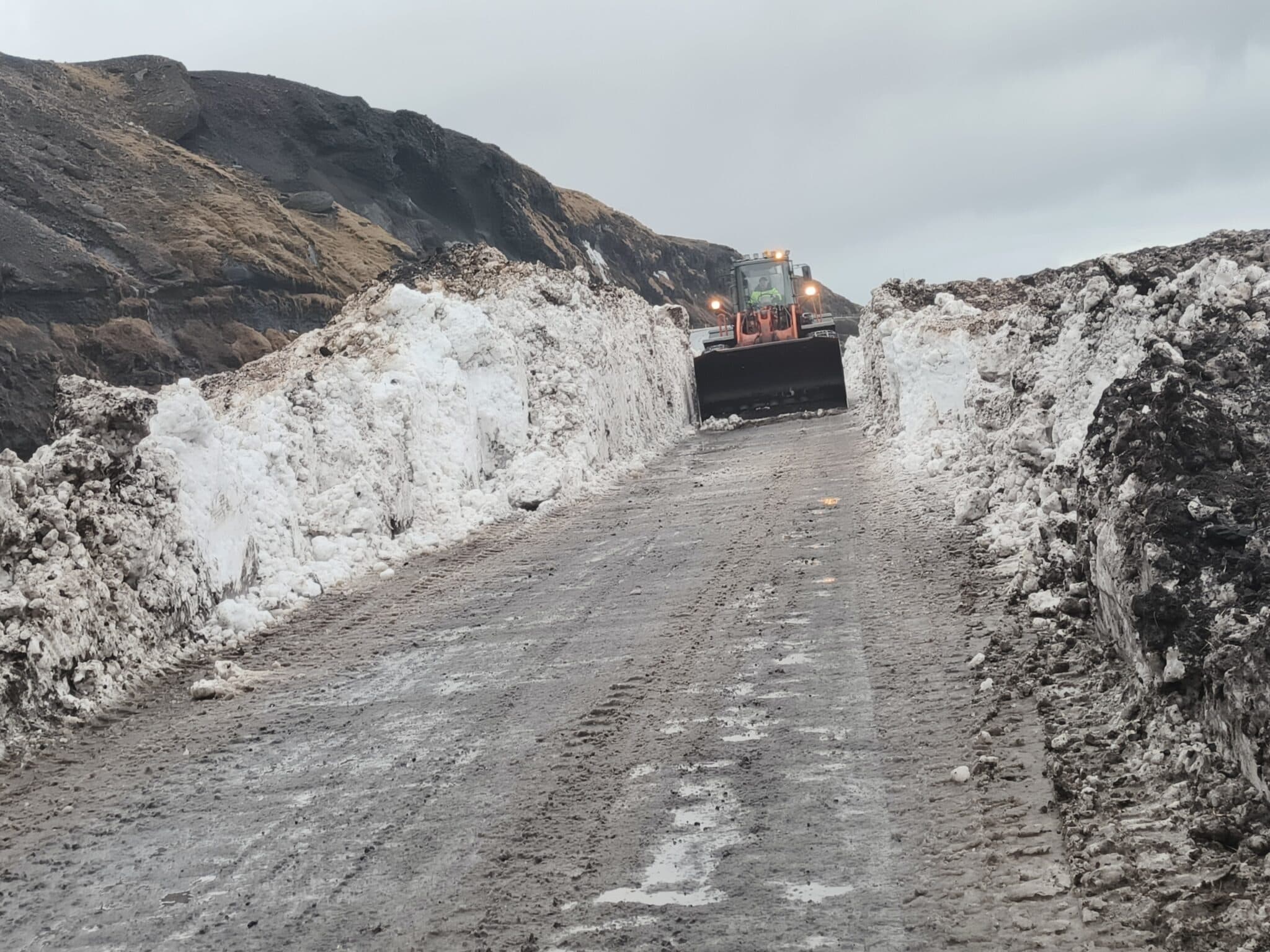 Veður er nú óðum að ganga niður á Snæfellsnesi eftir hávaða suðaustan rok og asahláku síðasta sólarhringinn. Nú eru starfsmenn TS vélaleigu að gera fært í gegnum snjóflóðin sem féllu í Ólafsvíkurenni undir kvöld í gær. Í gærkvöldi var flóðið um sex metra hátt en hjaðnaði í leysingunum í nótt og er nú um fjórir metrar. Lengd þess var um 100 metrar, náði yfir veginn og út í sjó. Engan sakaði þegar snjóflóðin féllu, enda var vegurinn þá auglýstur ófær vegna hvassviðris. Búist er við að hægt verði að hleypa umferð á veginn fyrir Ólafsvíkurenni innan skamms. Alfons Finnsson fréttaritari Skessuhorns tók meðfylgjandi mynd nú rétt í þessu.