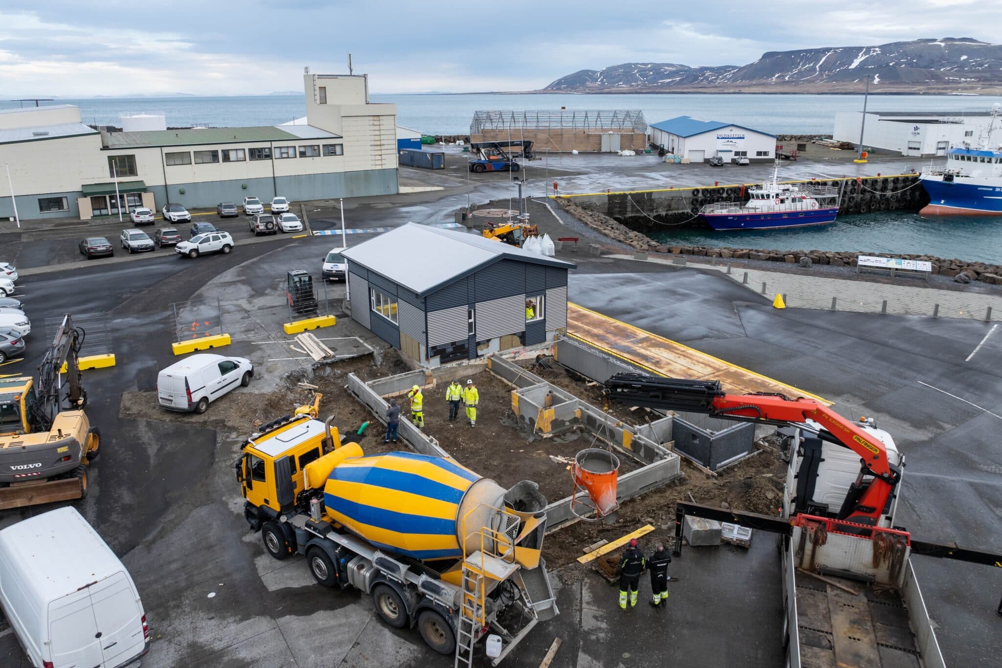 Það hefur verið nóg um að vera á höfninni í Grundarfirði síðustu vikurnar en á milli þess sem skipin koma með fullfermi í land þá eru einnig framkvæmdir við hafnarhúsið. Í vikunni var byrjað að raða upp einingum og steypa nýja viðbyggingu við húsnæðið. Þarna verða meðal annars salerni fyrir ferðamenn og aðstaða fyrir leiðsögumenn skemmtiferðaskipa. Undanfarin misseri hafa verið sett upp gámaklósett til bráðabirgða á meðan skemmtiferðaskipin eru að koma en nú verður aðstaðan mun betri fyrir farþega og starfsfólk hafnarinnar.