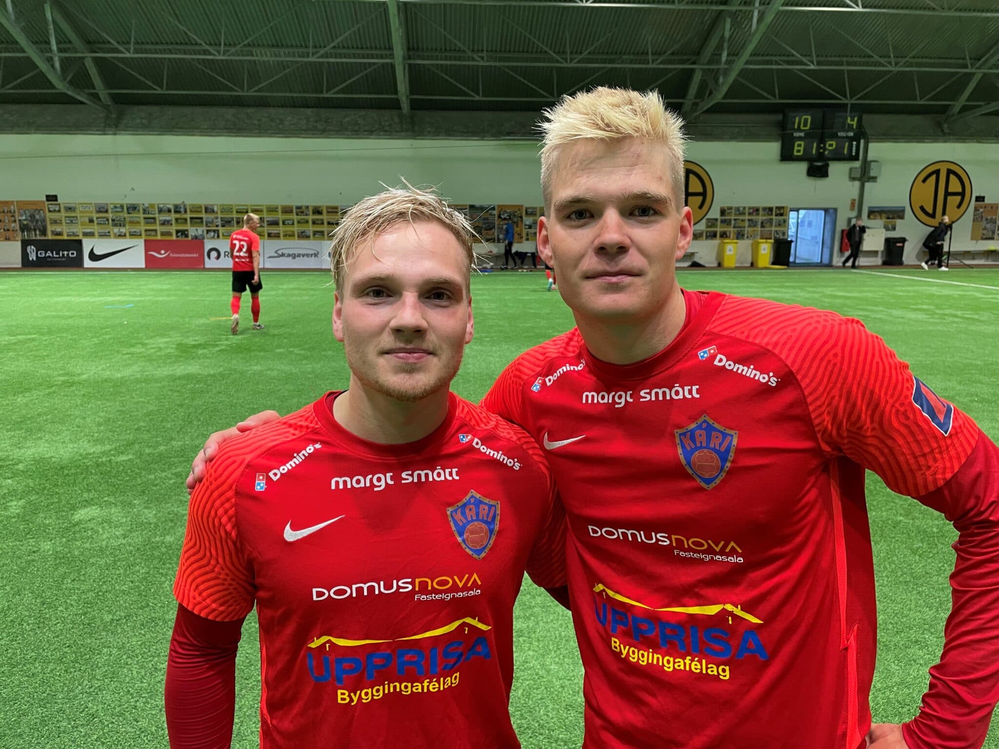 Marinó Hilmar (t.v.) skoraði tvö mörk í stórsigri Kára. Hér ásamt Hilmari Halldórssyni. Ljósm. vaks