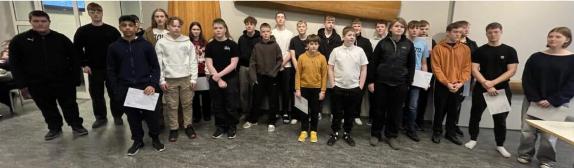 Nemendur sem mættu til að taka á móti verðlaunum og viðurkenningarskjölum. Ljósm. fva
