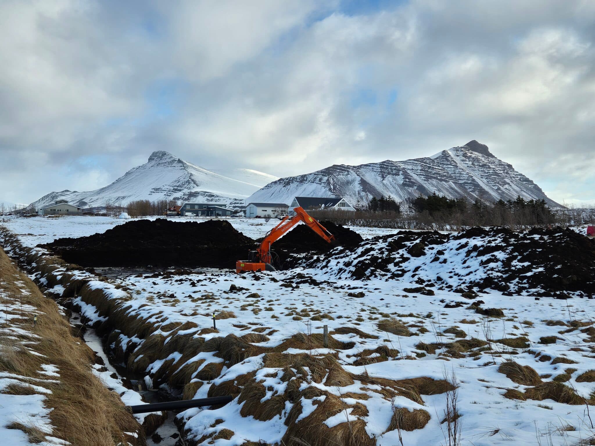 Byrjað er að grafa fyrir grunninum. Ljósm. sms