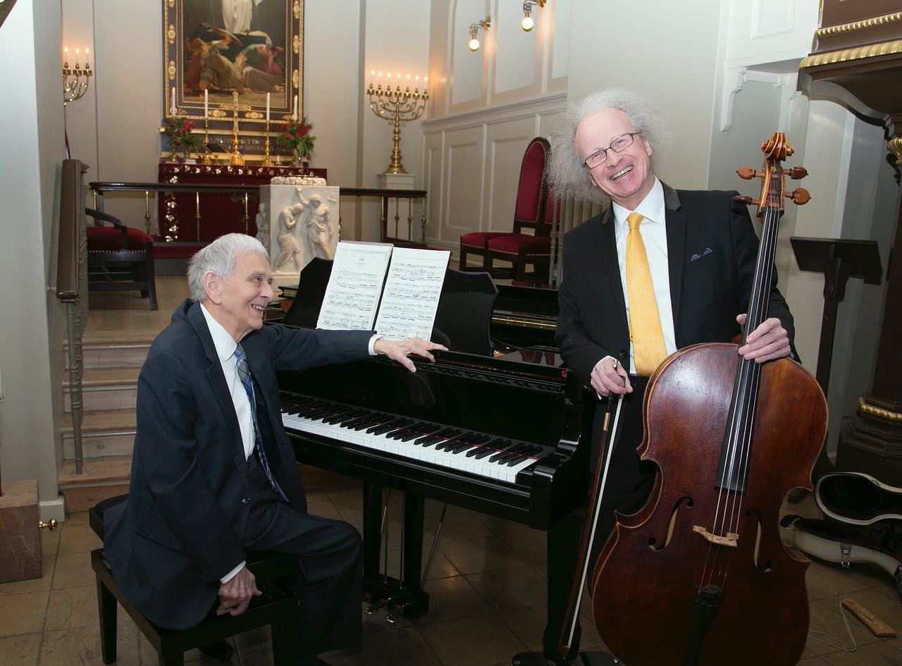 Einn af fjölmörgum viðburðum í kirkjulistaviku verður dagskrá til heiðurs Hauki Guðlaugssyni fyrrum organista Akraneskirkju þriðjudaginn 25. mars. Gunnar Kvaran sellóleikari mun ásamt fleirum koma þar fram. Hér er mynd frá 2021 af þeim félögum Hauki heitnum og Gunnari Kvaran. Ljósm. Gunnar Vigfússon